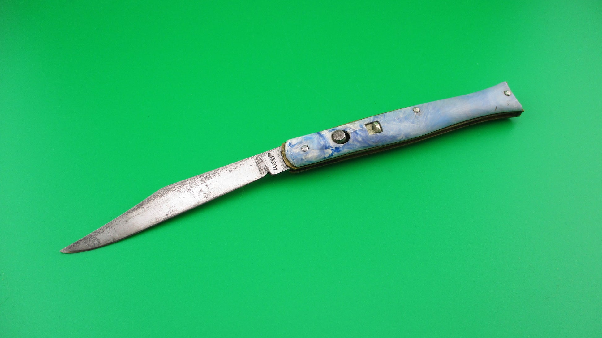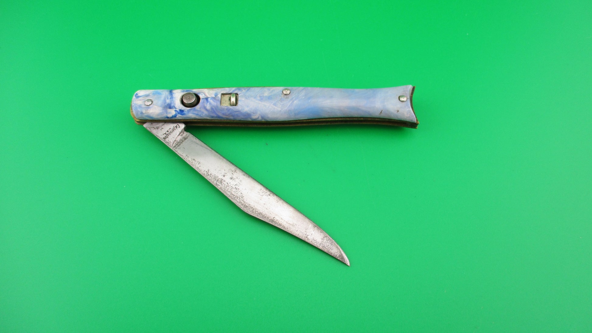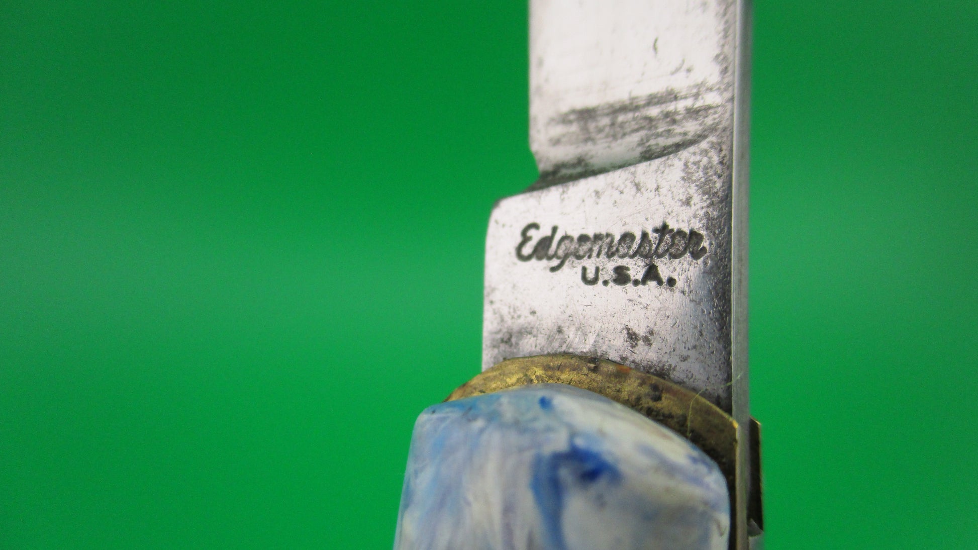 Edgemaster Fishtail Blue White Red swirl 1950s vintage switchblade