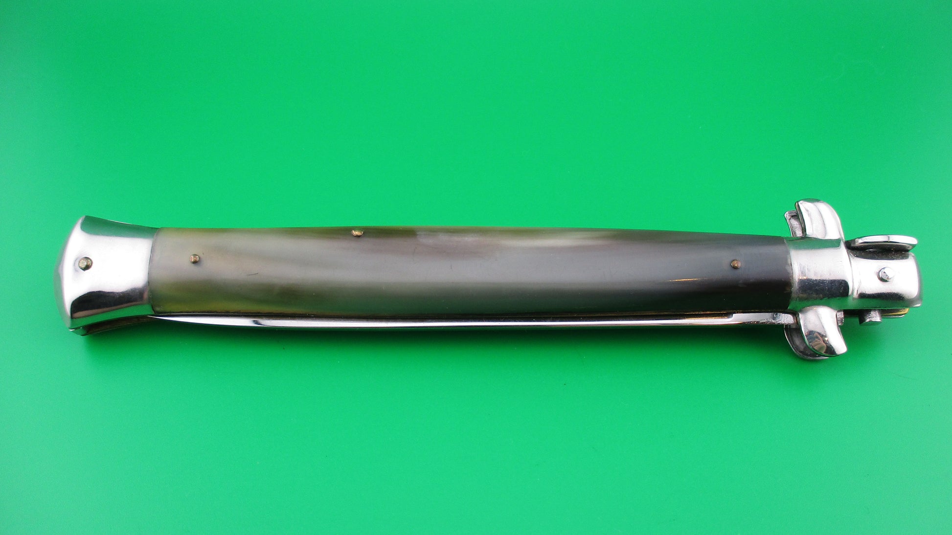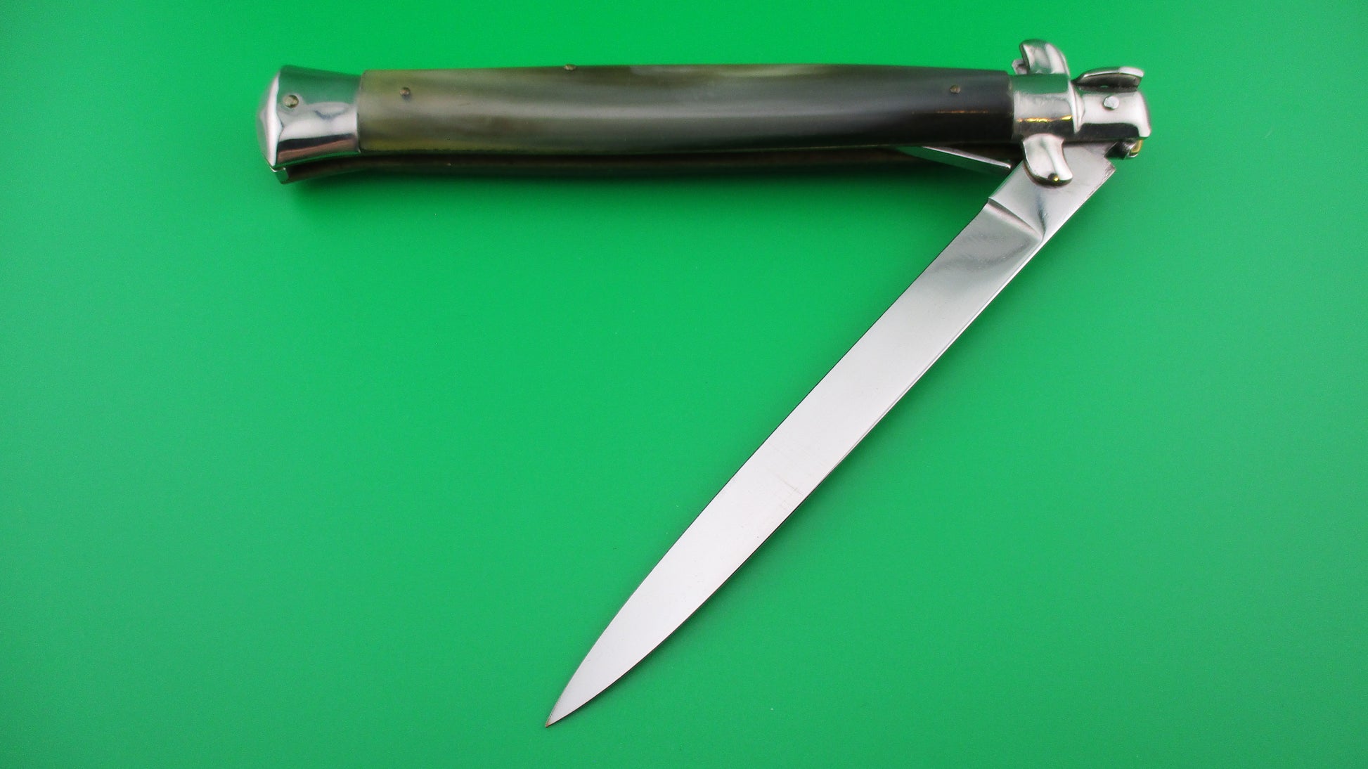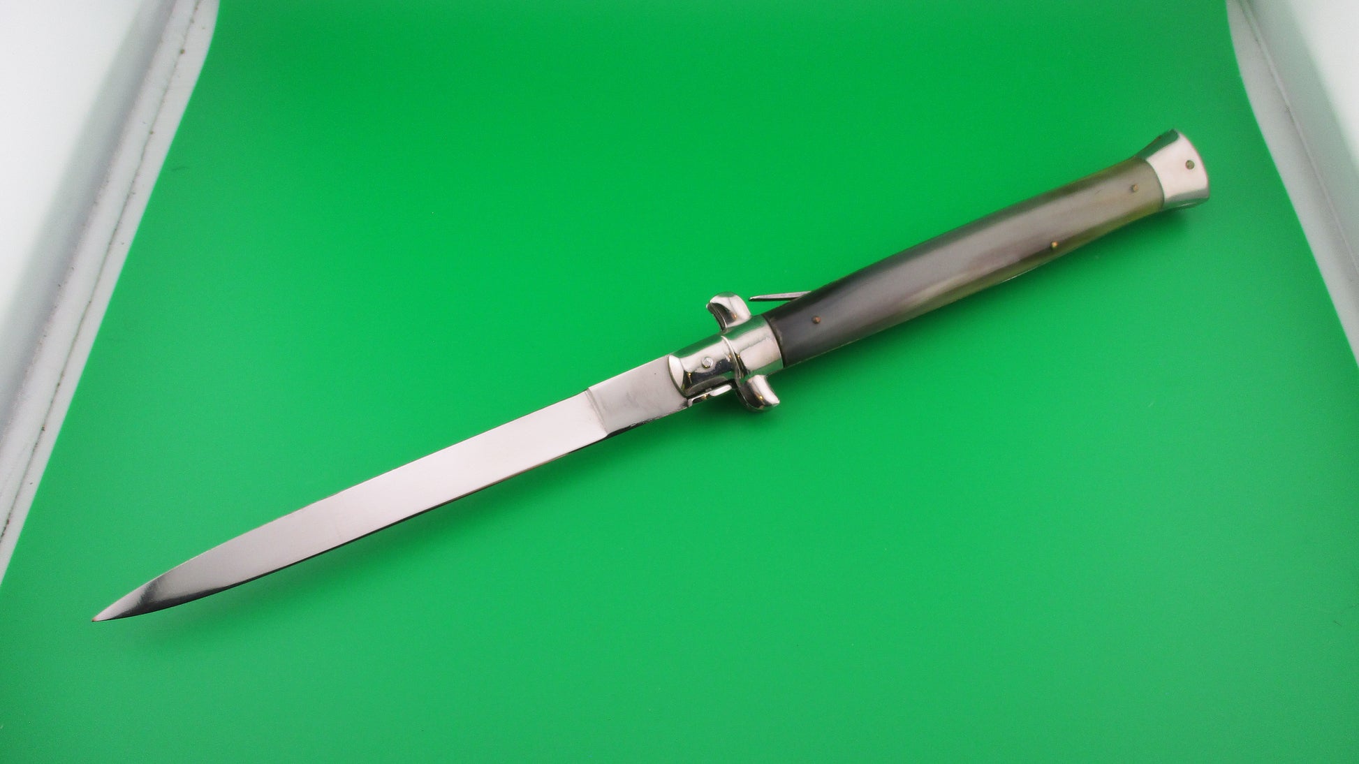 z QJD Rostfrei Italian 33cm 1960s Transitional Stiletto automatic knife green horn