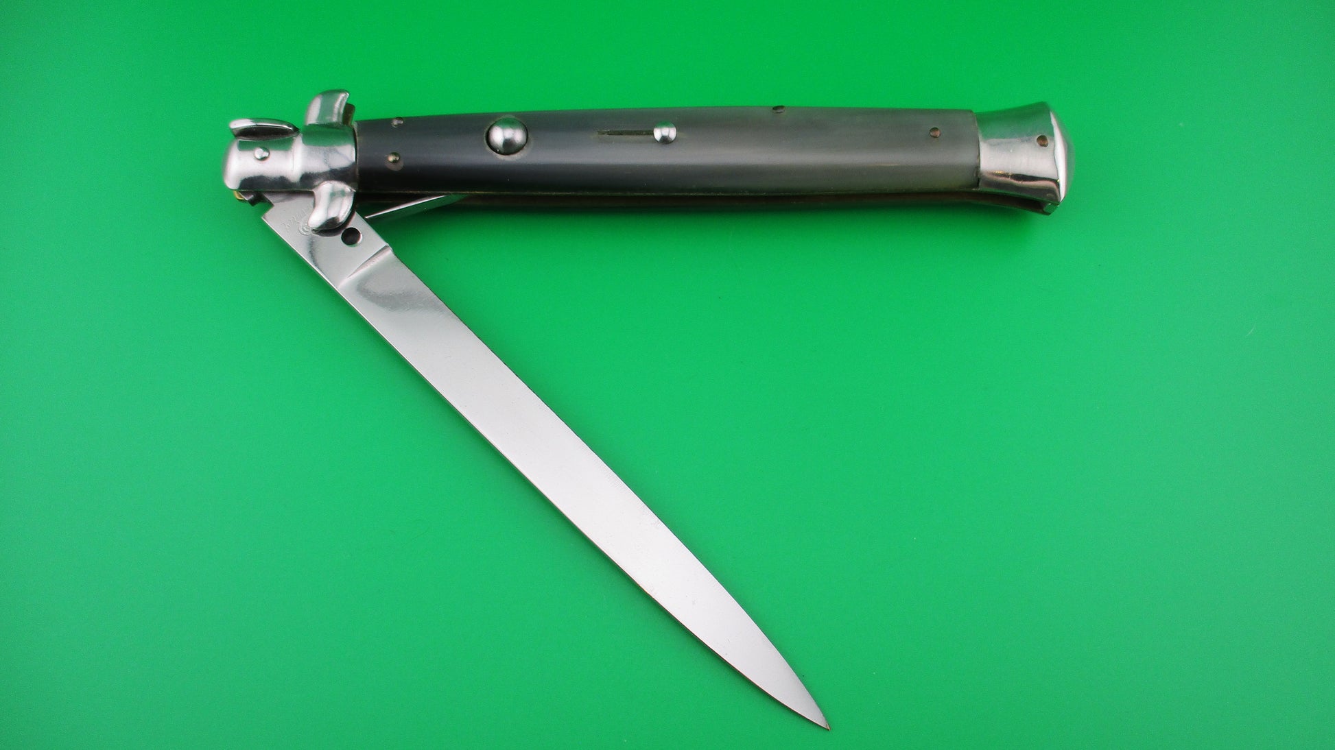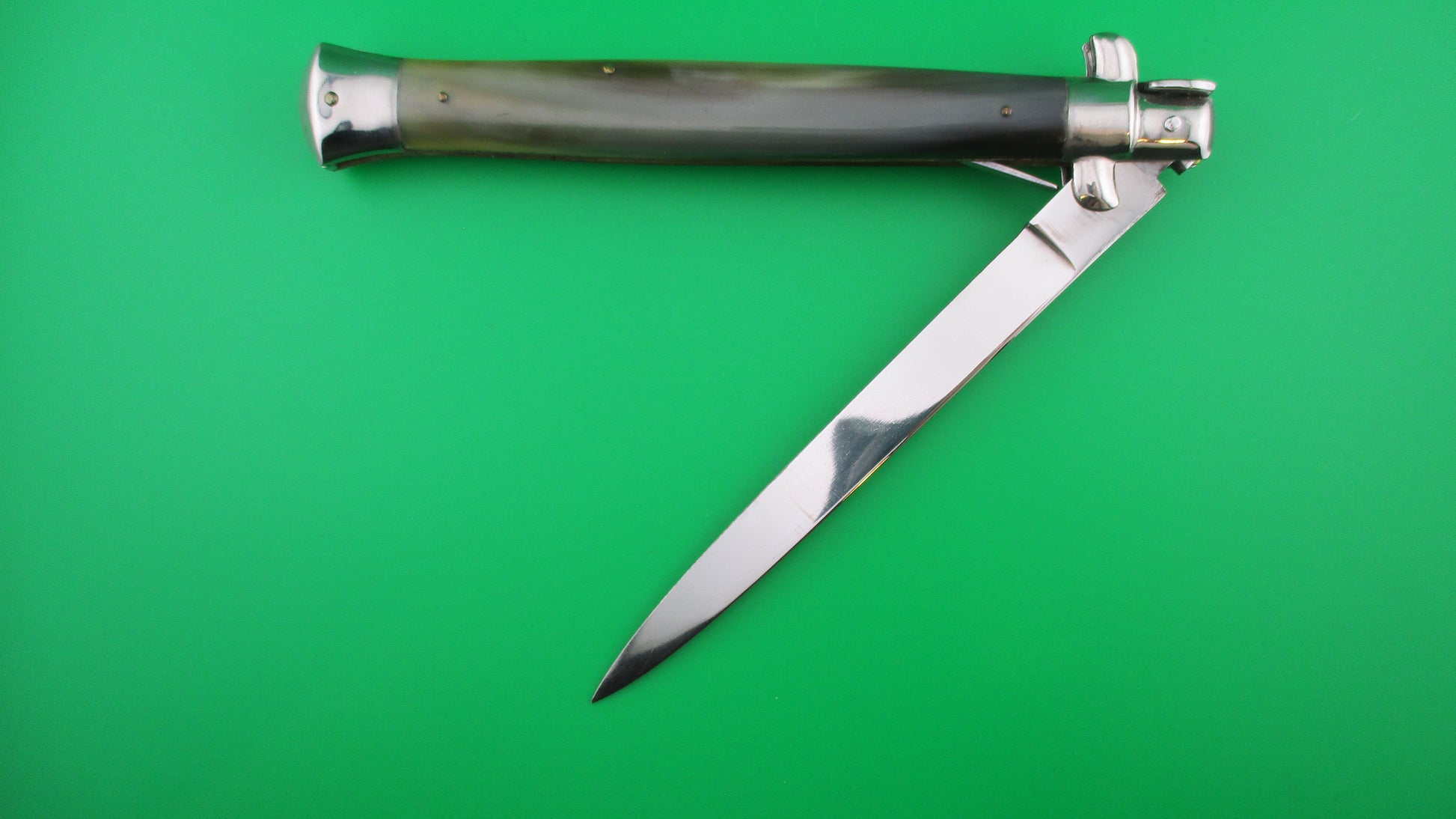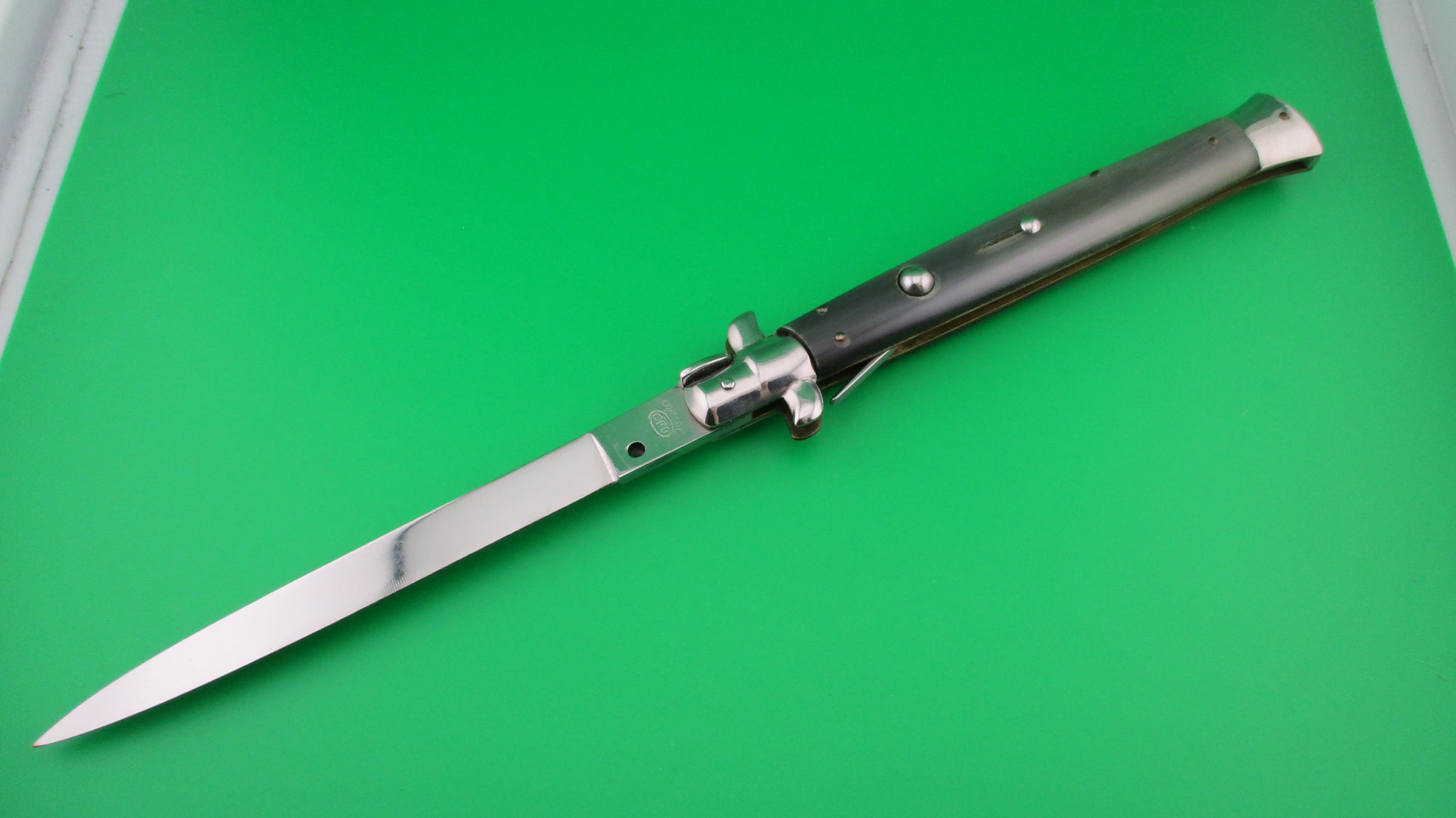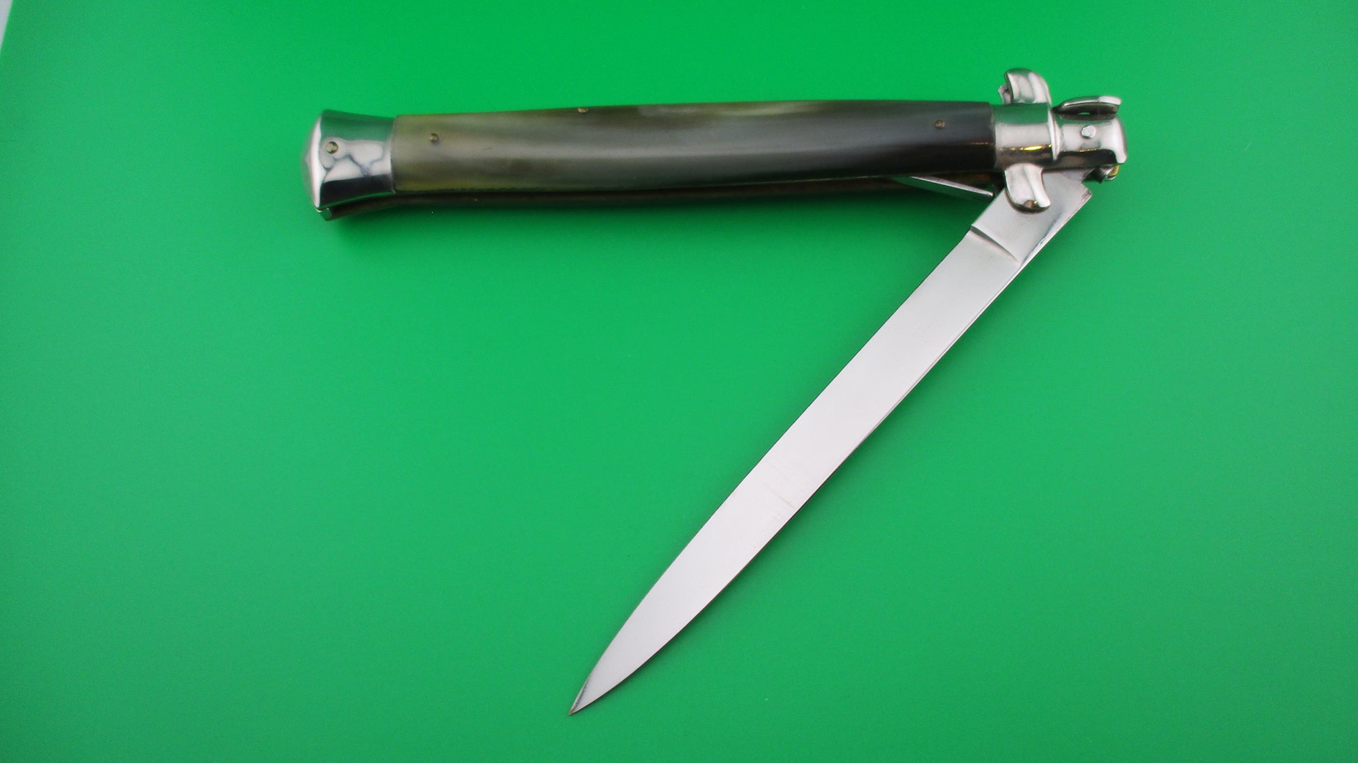 z QJD Rostfrei Italian 33cm 1960s Transitional Stiletto automatic knife green horn
