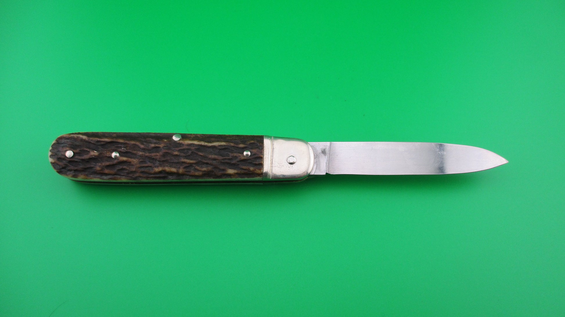 Vintage BOKER Tree Brand Classic 715R Lever knife made in Germany measures 11cm closed and 19.5cm (7.75 inches) open with brass liners and nickel silver bolsters, lever and pins. The blade is full with a strong etch that says TREE BRAND ARBOLITO BOKER around a tree over 715R GERMANY ALEMANIA ROSTFREI and the tang is stamped BOKER SOLINGEN GERMANY ROSTFREI with a picture of a Tree. The scales (handles) are enhanced Stag with added jigging pattern to add interest to the stag and in great condition. The knife works great with blade tip below liners when closed, Strong snap and Tight lockup open. Nice example of a German BOKER 715R Tree Brand lever knife. Nearly new condition.