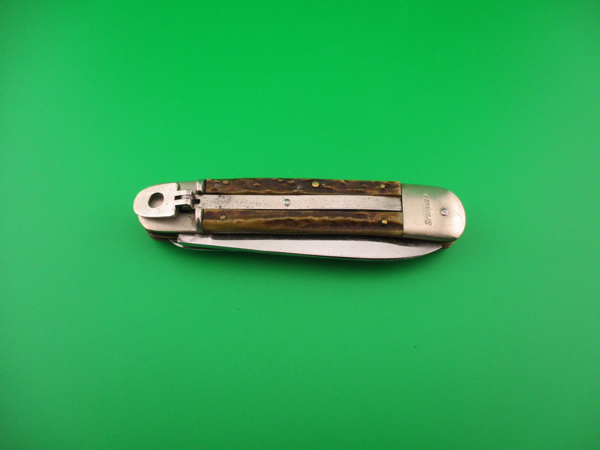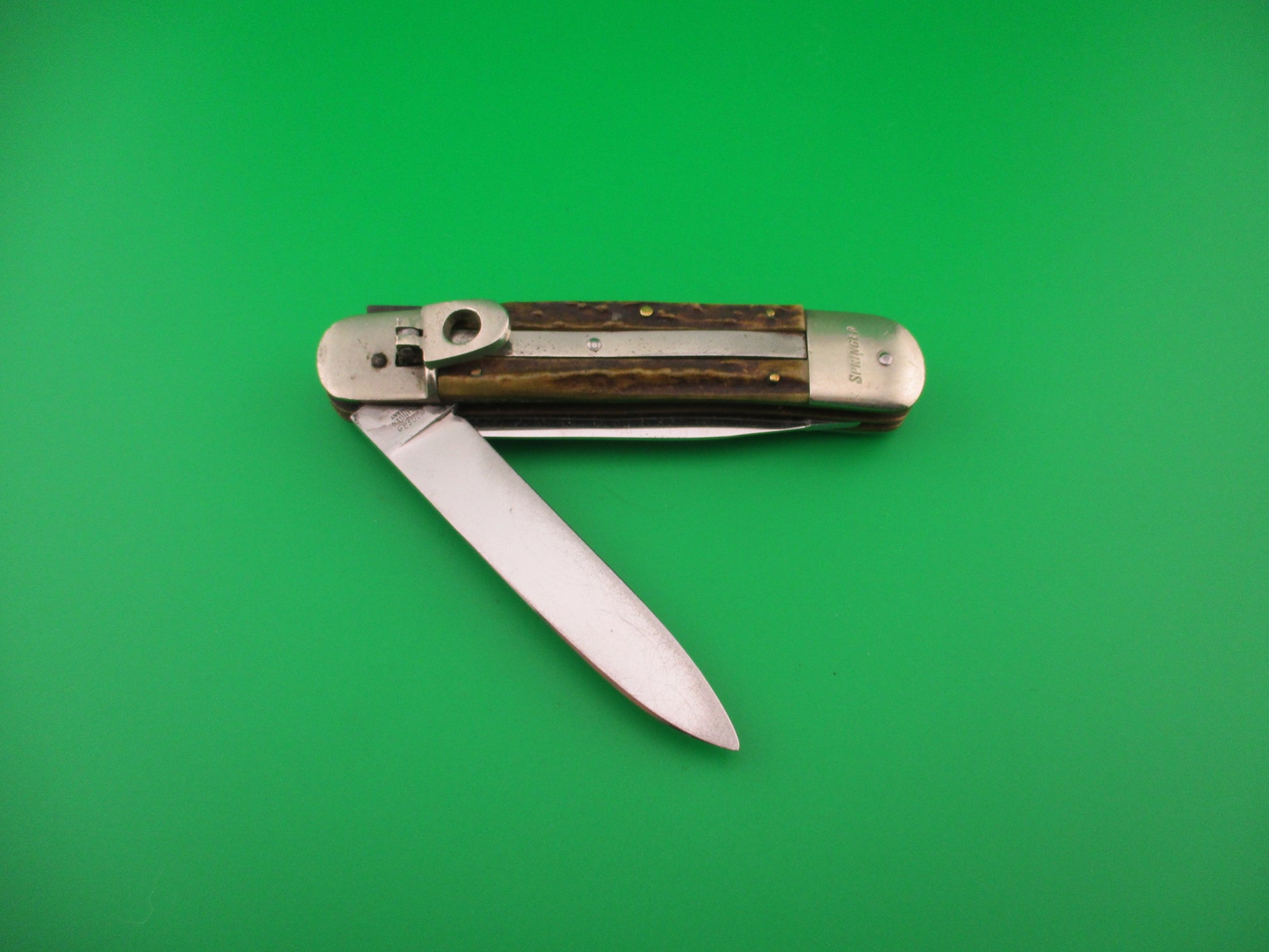Bonsa SOLINGEN GERMANY 11cm German Stag Lever SPRINGER 2 Blade automatic knife
