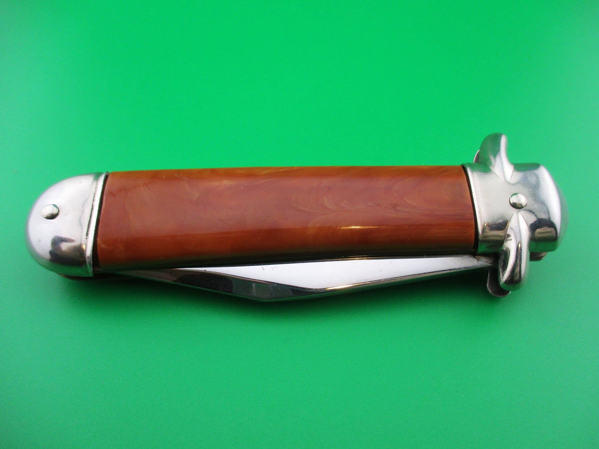 z Colonial SHUR-SNAP Stubby Fatjack Brown swirl switchblade knife