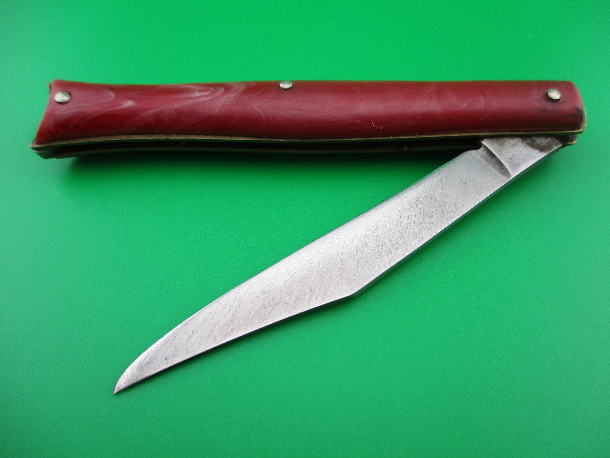 z Edgemaster Fishtail 1950s Vintage Red swirl handles