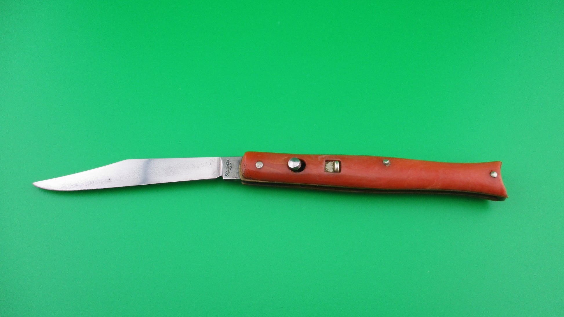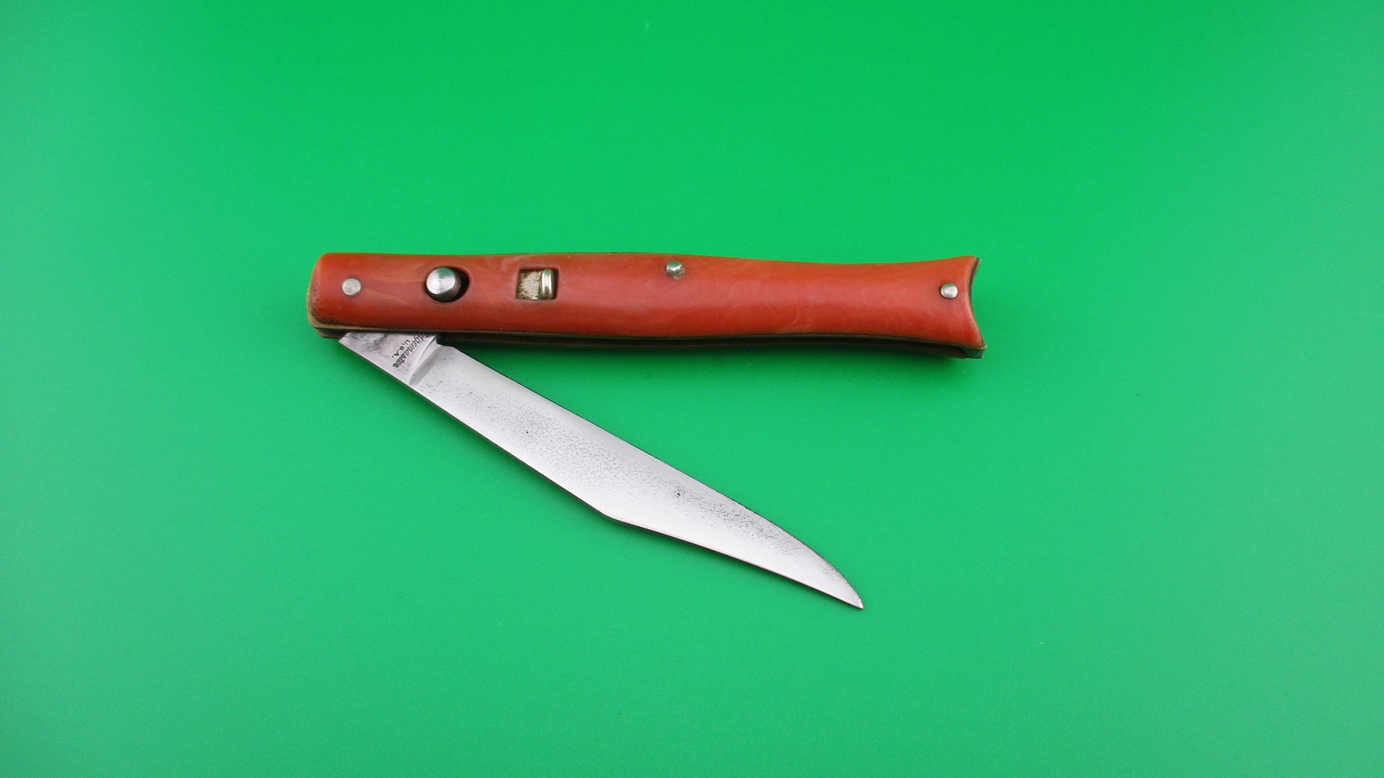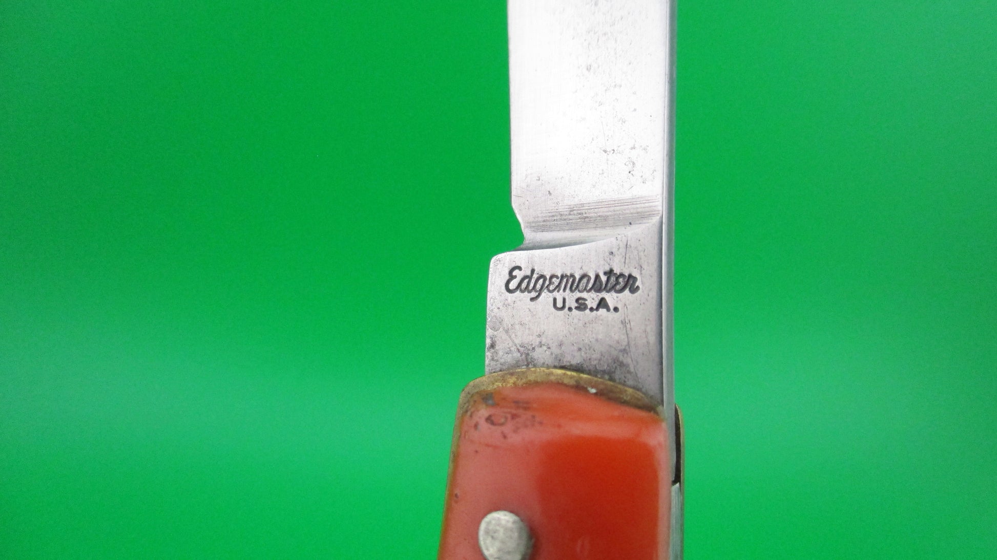 z Edgemaster Fishtail 1950s Salmon synthetic handles vintage switchblade