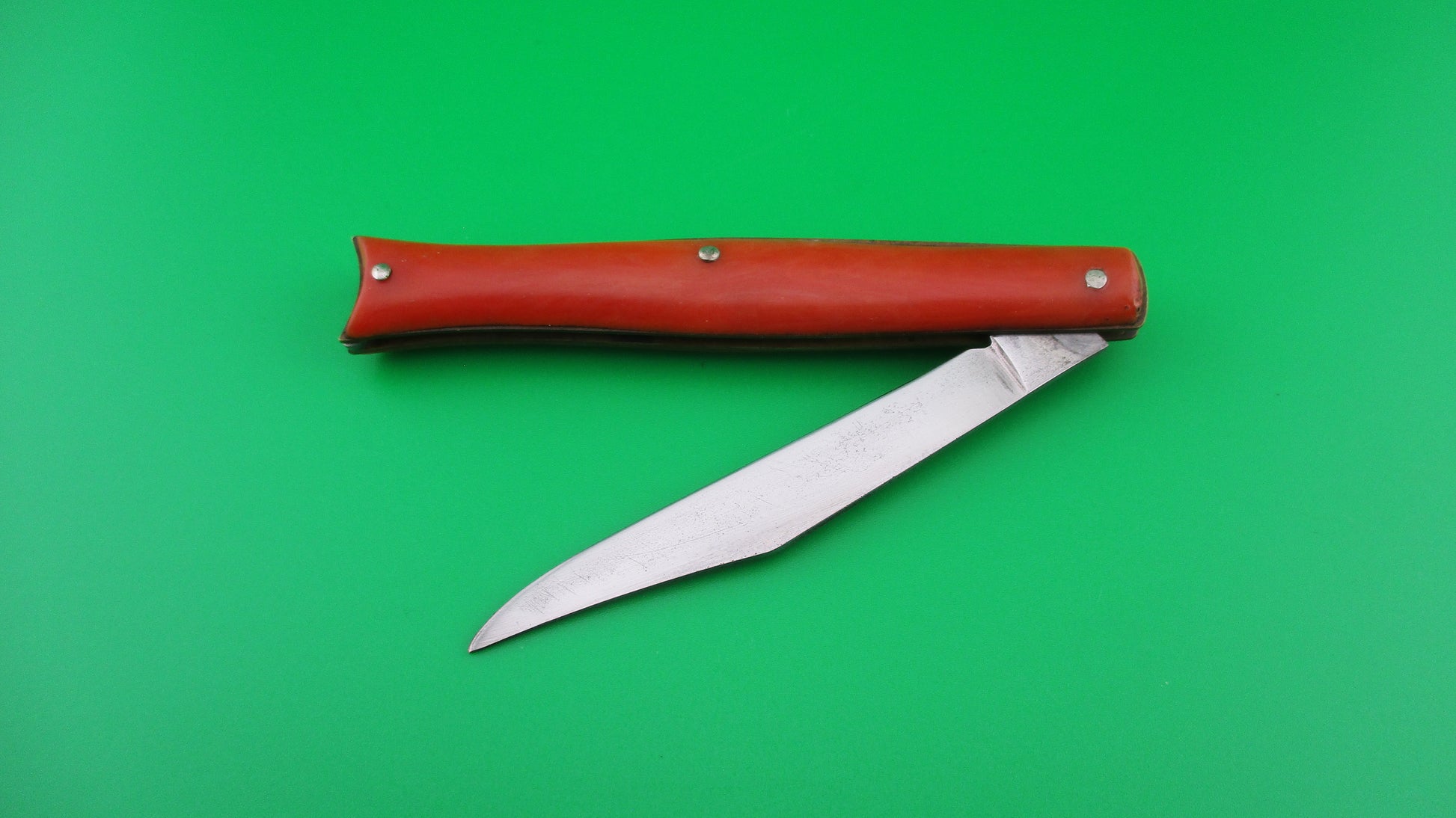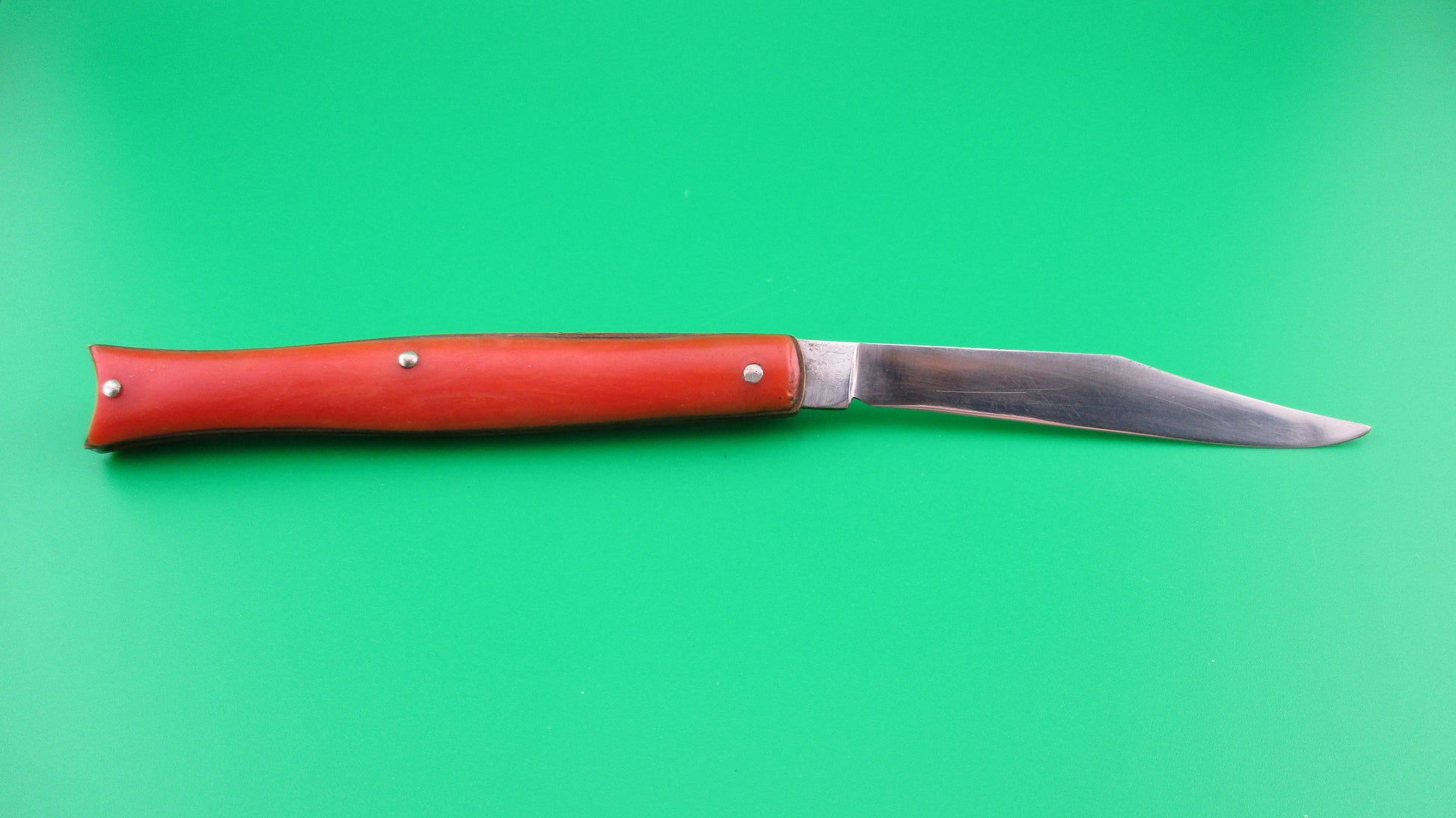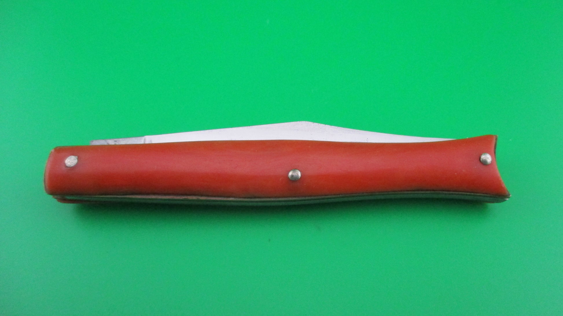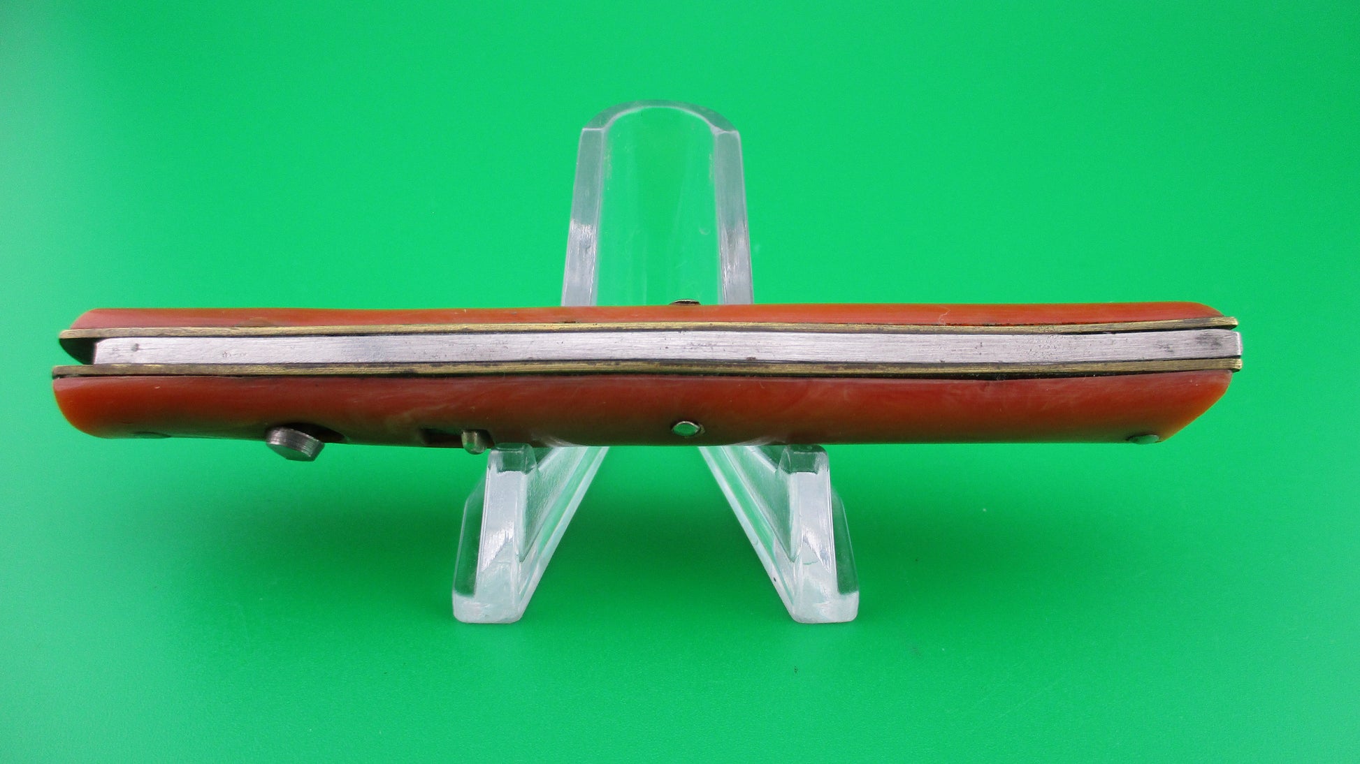 z Edgemaster Fishtail 1950s Salmon synthetic handles vintage switchblade
