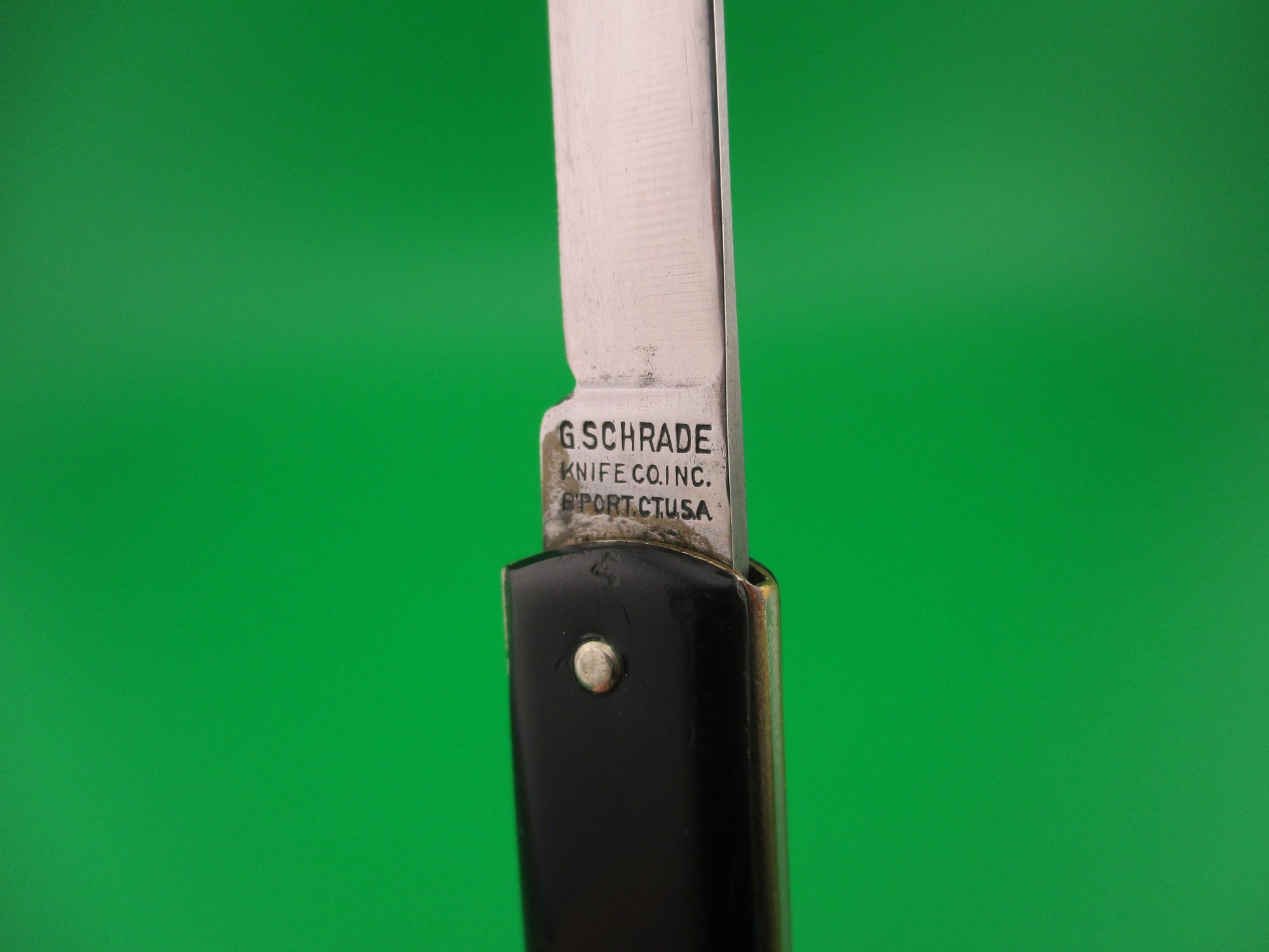 G SCHRADE Pullball Black w white dice pull vintage switchblade knife