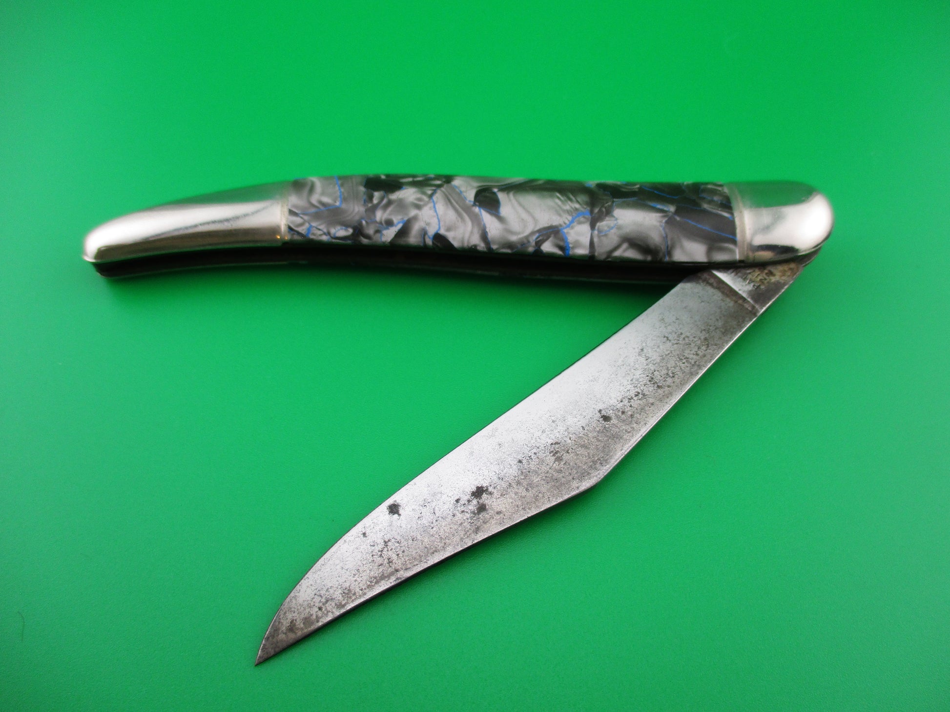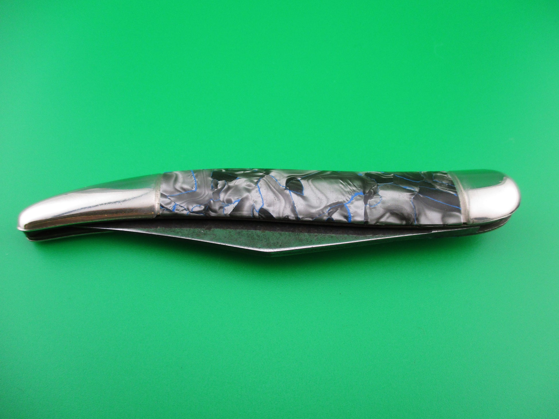 z Hammer Brand Imperial Toothpick Silver Pearl & Blue 1950s vintage switchblade