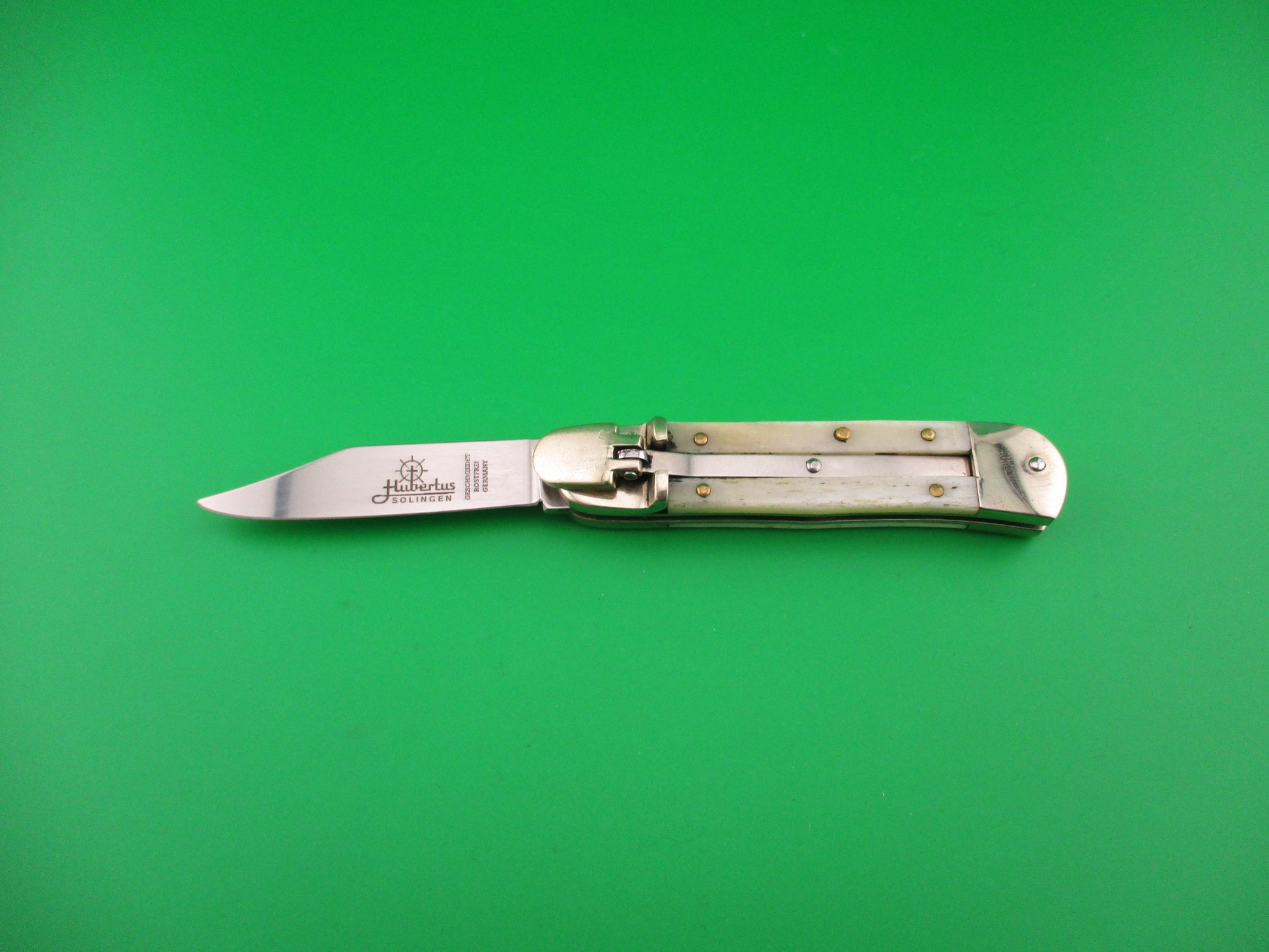 Hubertus SOLINGEN 8cm German Lever Smooth Bone automatic knife in box
