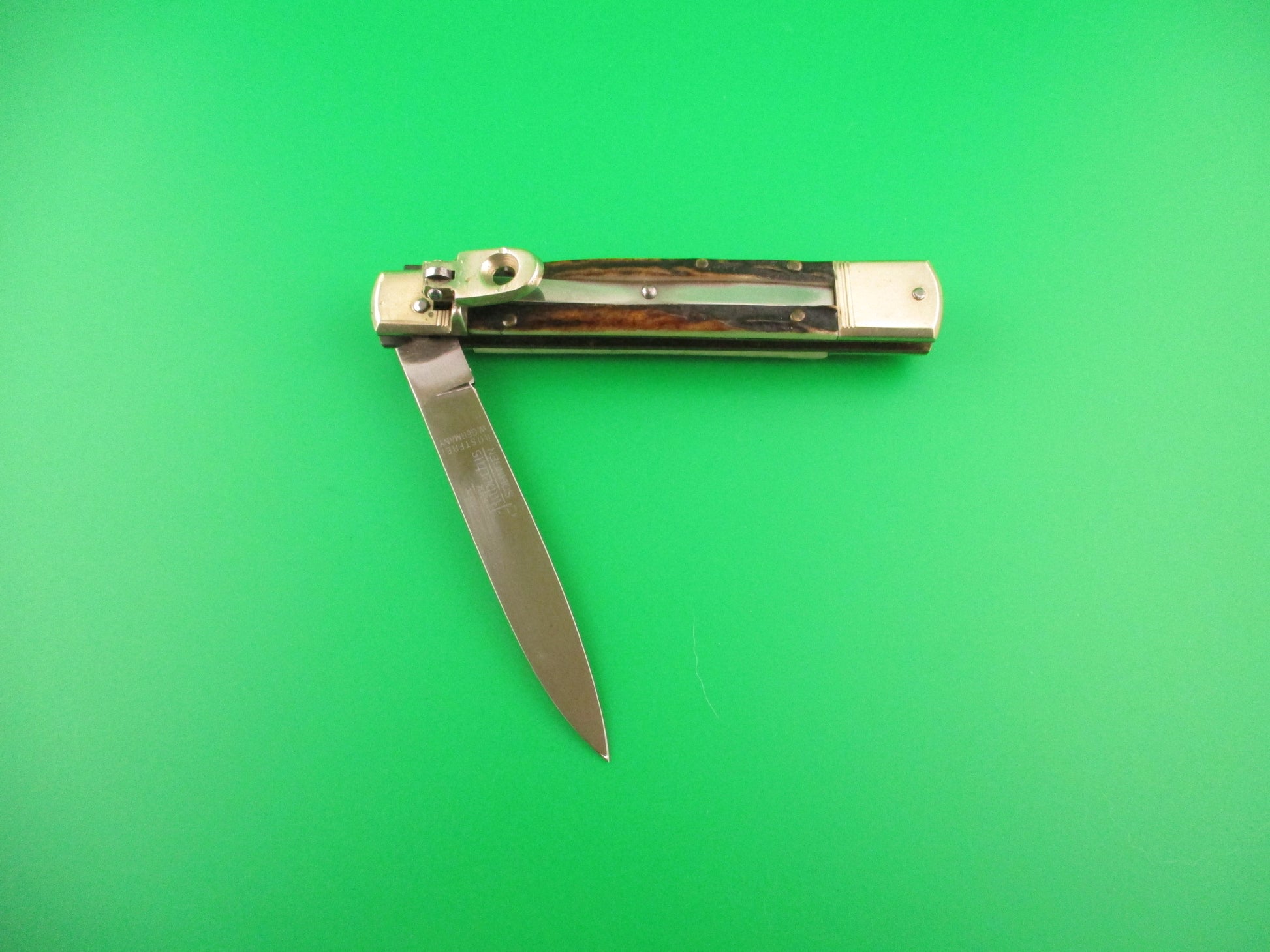 HUBERTUS SOLINGEN ROSTFREI 11cm West German Slimline Lever Stag automatic knife