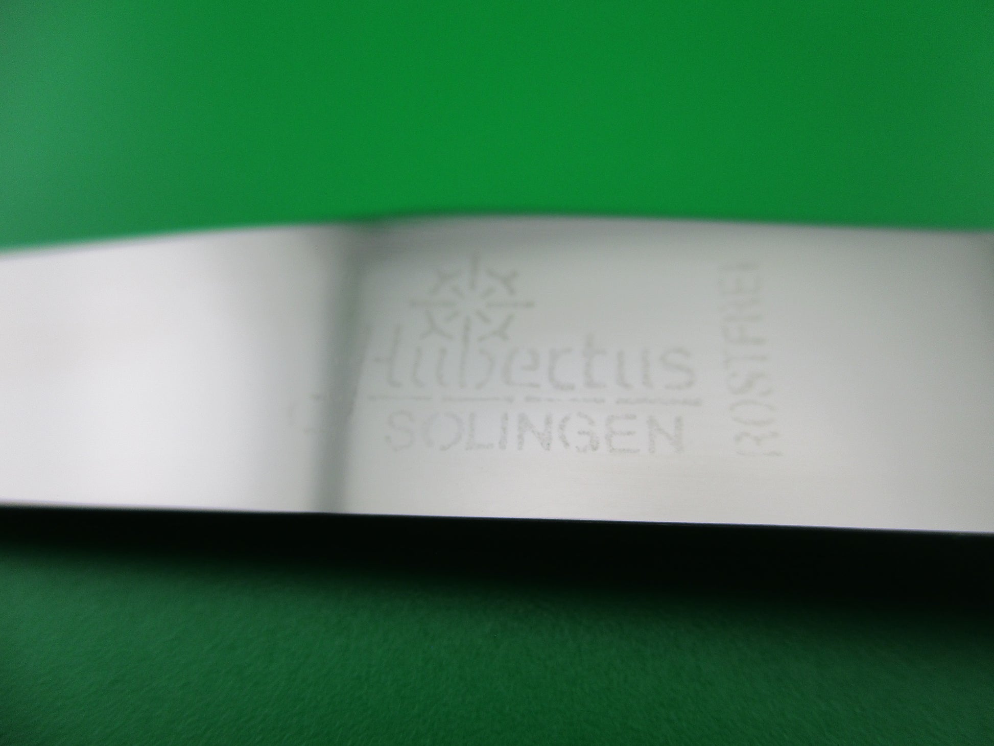 Nice HUBERTUS Fisherman's switchblade with original chain. This knife was designed with fishermen in mind. I call them Fish Knockers because the automatic blade is a fish scaler with a heavy cylindrical knob on the end designed to kill the fish by knocking them in the head with it. The manual blade is for filleting the fish and is etched HUBERTUS SOLINGEN ROSTFREI. The chain keeps the knife attached to your pants, or coat so you don't lose it and keeps the knife within reach no matter the situation. The knife measures 28.5cm open approx 11.25 inches with brass liners and nickel silver bolsters, lever and knocker. The knife is in nearly new condition with wood scales (handles). It works great. The knocker swings open when you press the lever and locks tight. Very unique and Cool German lever switchblade fisherman's knife.