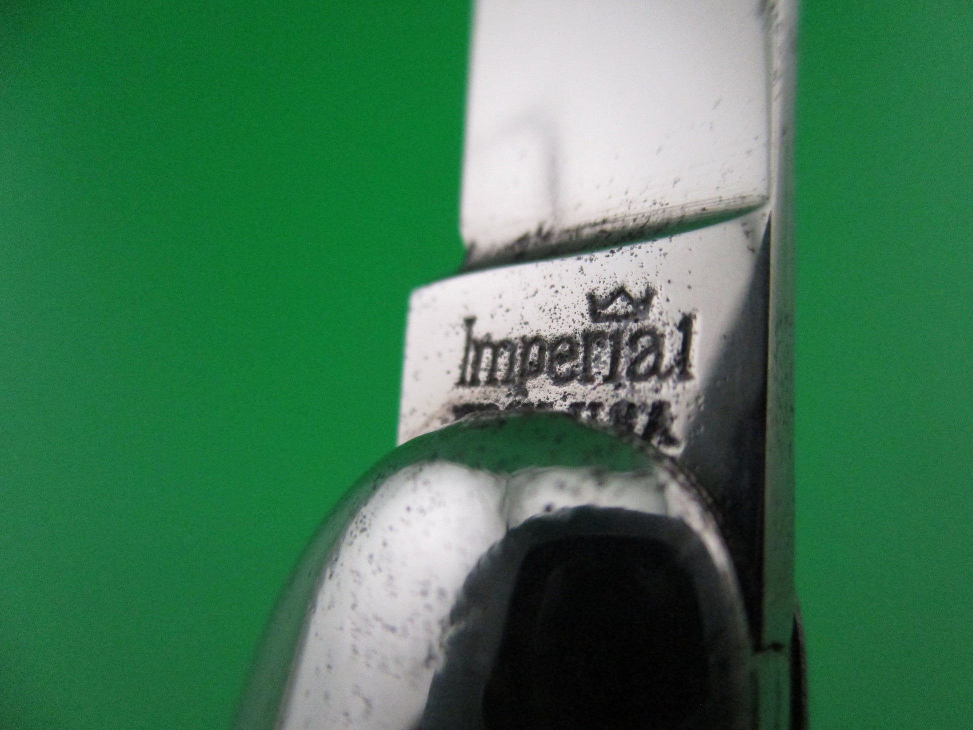 Imperial toothpick switchblade made by the Imperial Knife Co of Providence, RI in the 1950s. The black wrapped scales are commonly referred to as imitation bone and are hollow steel wrapped in a thin layer of celluloid. The knife measures 4.25 inches closed and 7 5/8 inches open with steel liners. Stamped Imperial Prov USA and it had2 sets of patent numbers on the rear, but stamped very light and looks like someone might have cleaned the back tang. The blade is full and shiny. The knife works well with blade tip seating below the liners, good snap and average lockup for a used Hammer Brand with about 1/8 inch movement each was. Does rattle slightly if shaken with blade open, as most of these do with a lot of use. Safety works. EX- condition