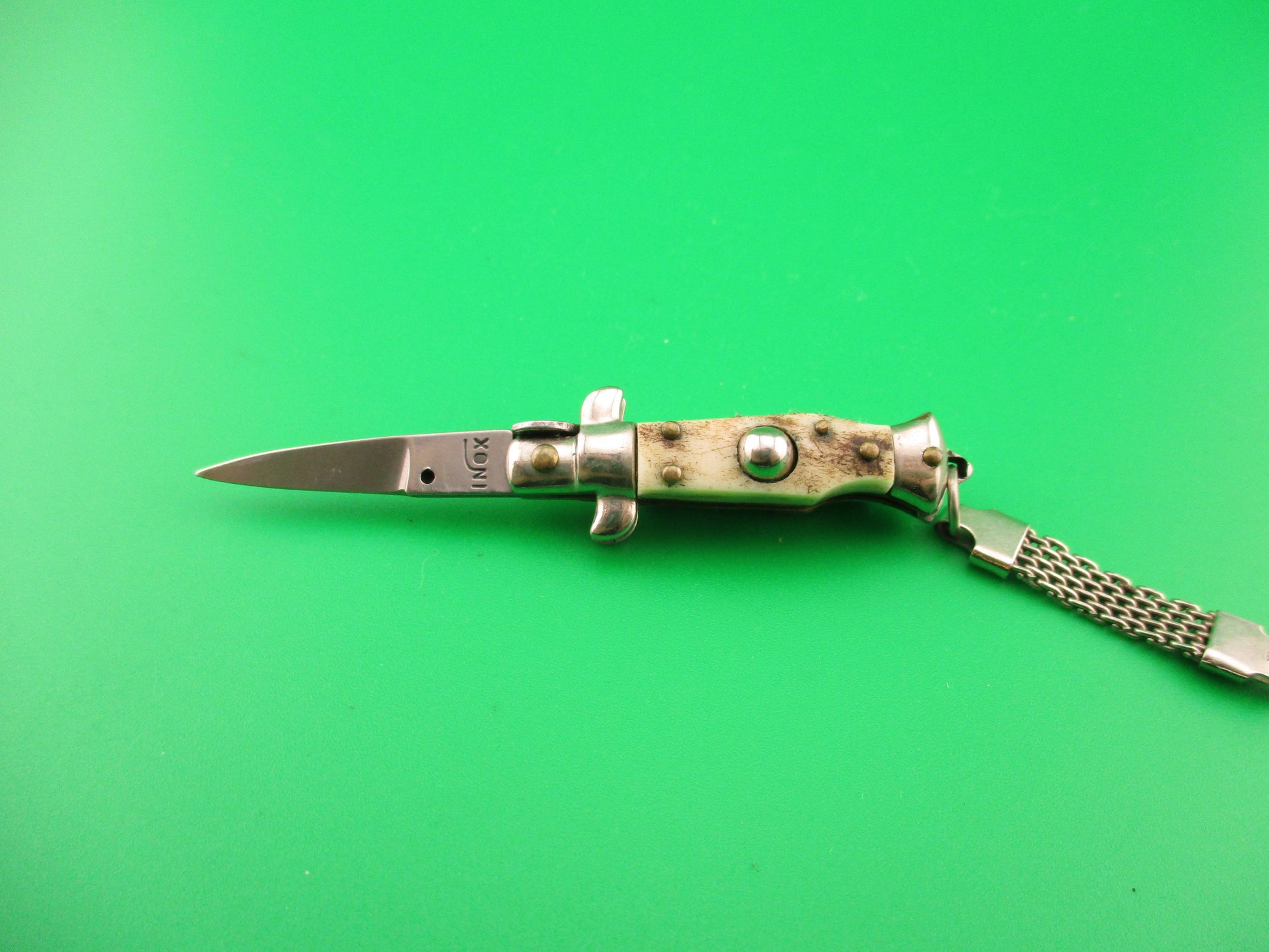 INOX 7cm Italian Mini Picklock Stag 4 pin vintage automatic keychain knife