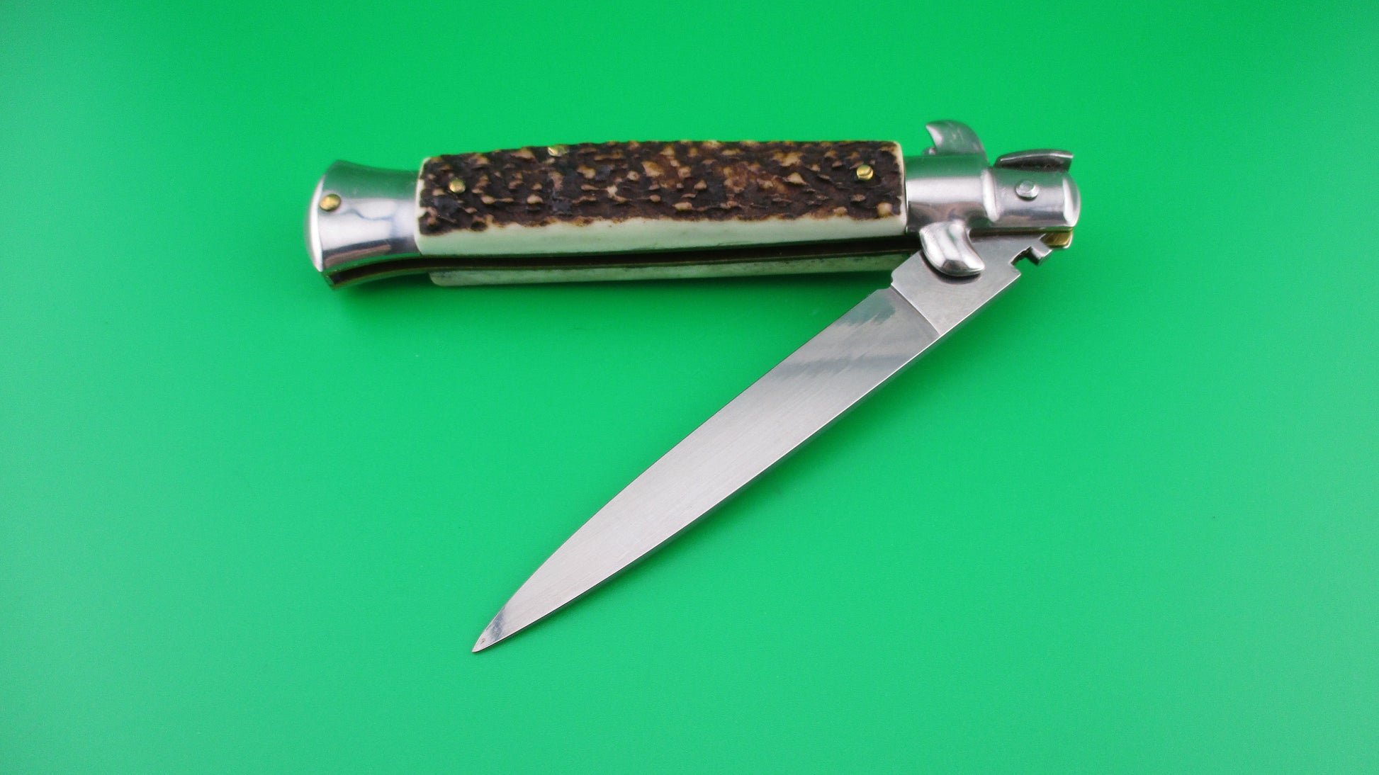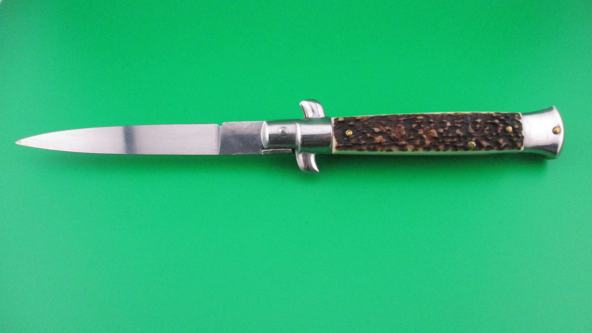 Z ITALY INOX 22cm Italian Stiletto Stag Swivel bolster vintage automatic knife