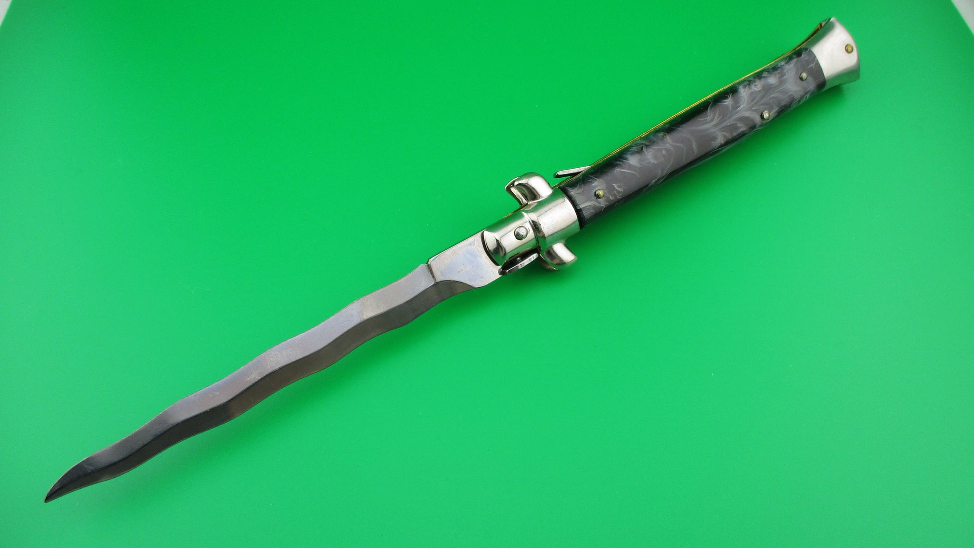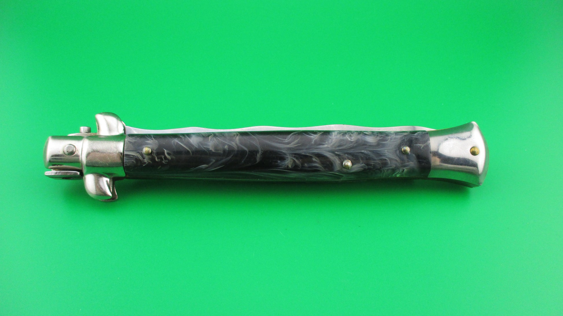 z ITALY INOX 28cm Italian Stiletto KRIS black & gray swirl switchblade knife