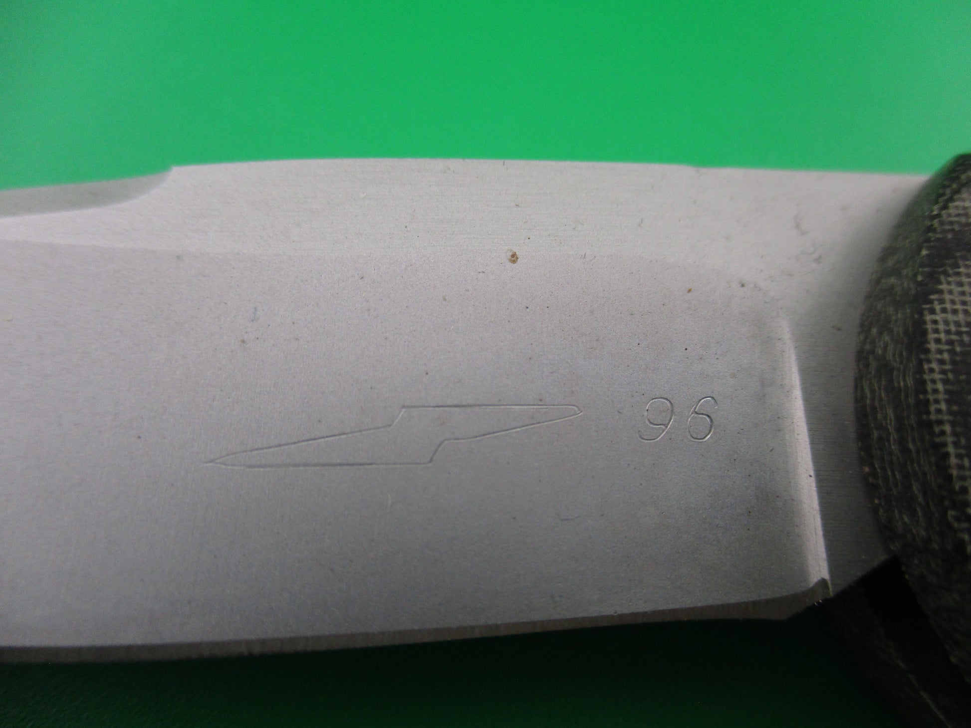 This is a sweet Custom switchblade made by James Huckeba in the 1990s. Jim's knives are pretty recognizable by his flush round button, linerless & bolsterless scaled knives. This knife measures 4 1/8" closed and 7,25 inches open. The scales are light and very attractive Micarta. The matte finish blade is full and is marked with a lightning bolt and 96, which is the year it was made. Jim's knives work very smoothly. The blades are fired by a coil spring. The blade tip seats deep, fires Strong and locks up tight, as all of his knives seem to do. Jim is no longer with us, but his knives will help his legend to live on as one of America's top custom automatic knife makers.