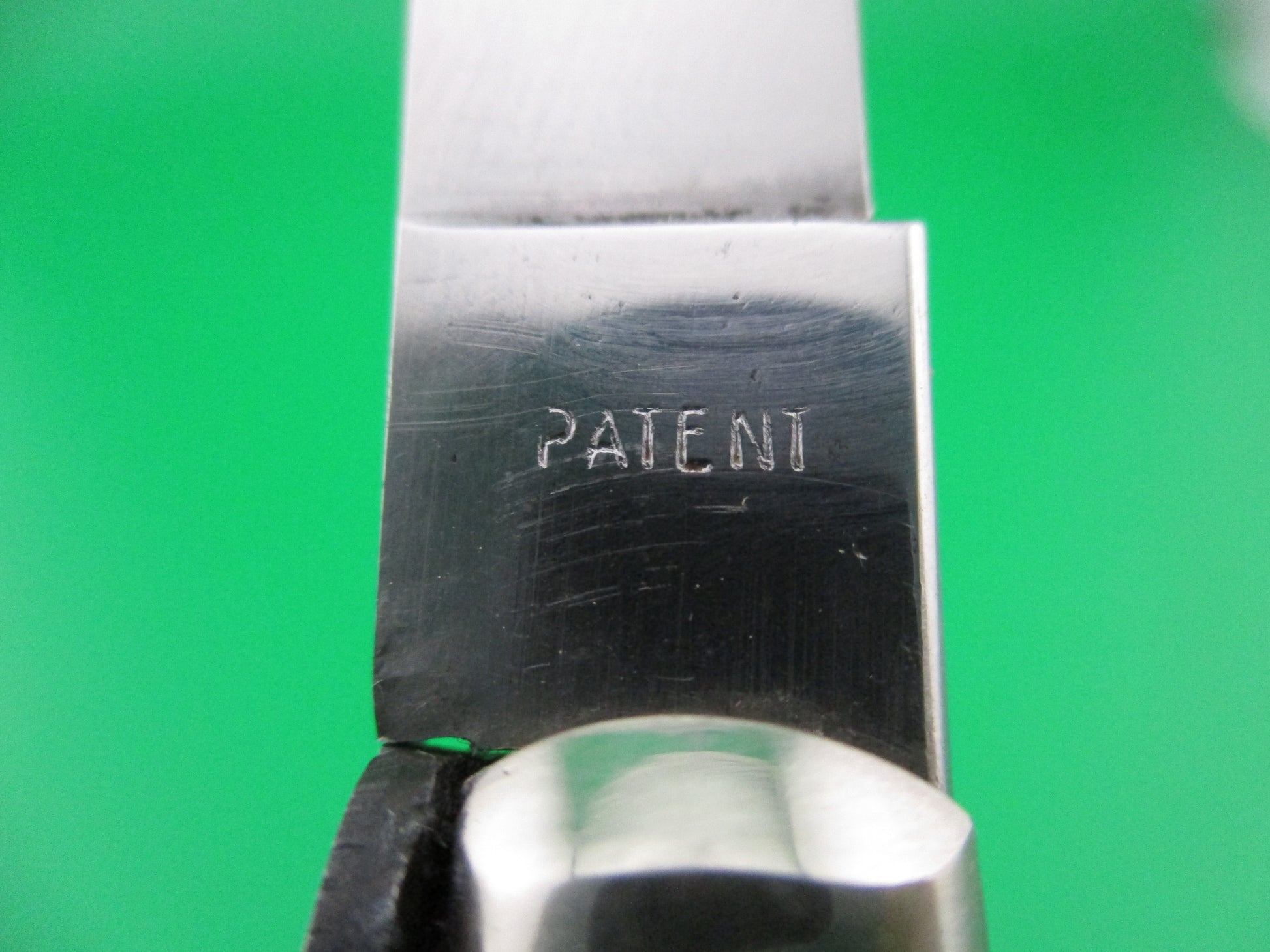 Kissing Crane vintage 20cm Italian Stag Humpback automatic knife. Measures 19.5cm (7.75 inches) open with brass liners and nickel silver bolsters, button and safety cap. The flat grind blade is full and retains the original factory finish and is marked ROSTFREI with a picture of two cranes on the front and PATENT on the rear of the tang. The stag scales are beautiful with deep color and no cracks. The coilspring fired blade tip seats below the liners closed, nice smooth snap and good lockup open with typical little bit of movement as most of these have new. Safety works. Nice vintage Italian stag Kissing Crane humpback automatic knife.