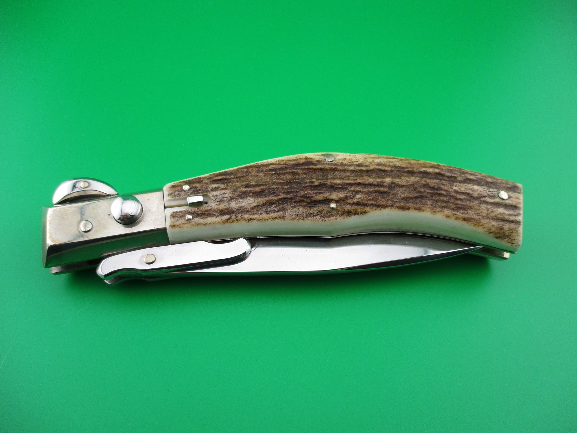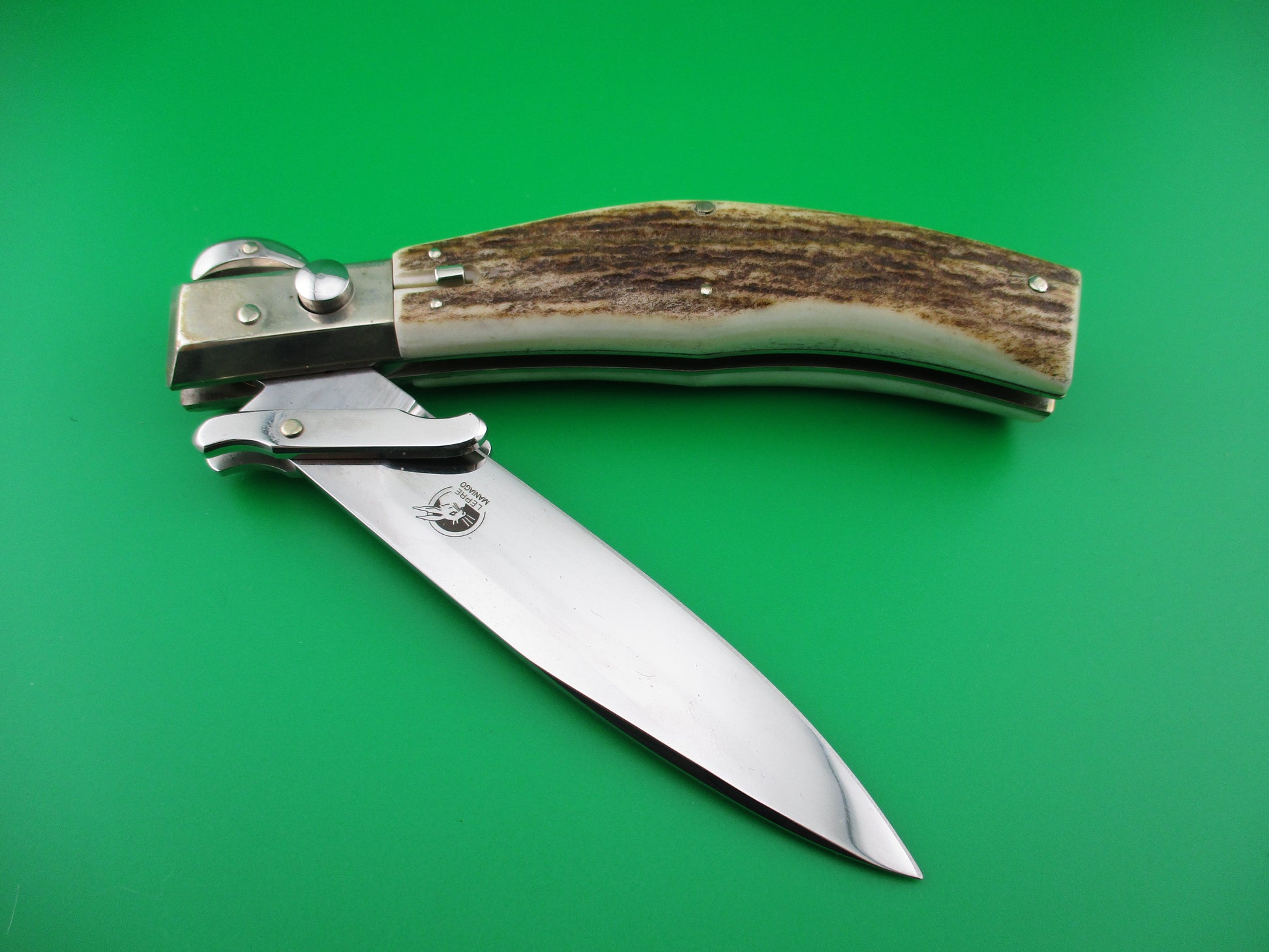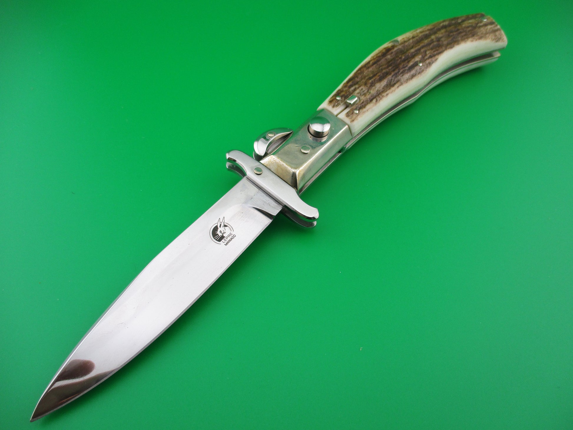 z Lepre Managio Italian 25cm Picklock Stag Swing guard automatic knife
