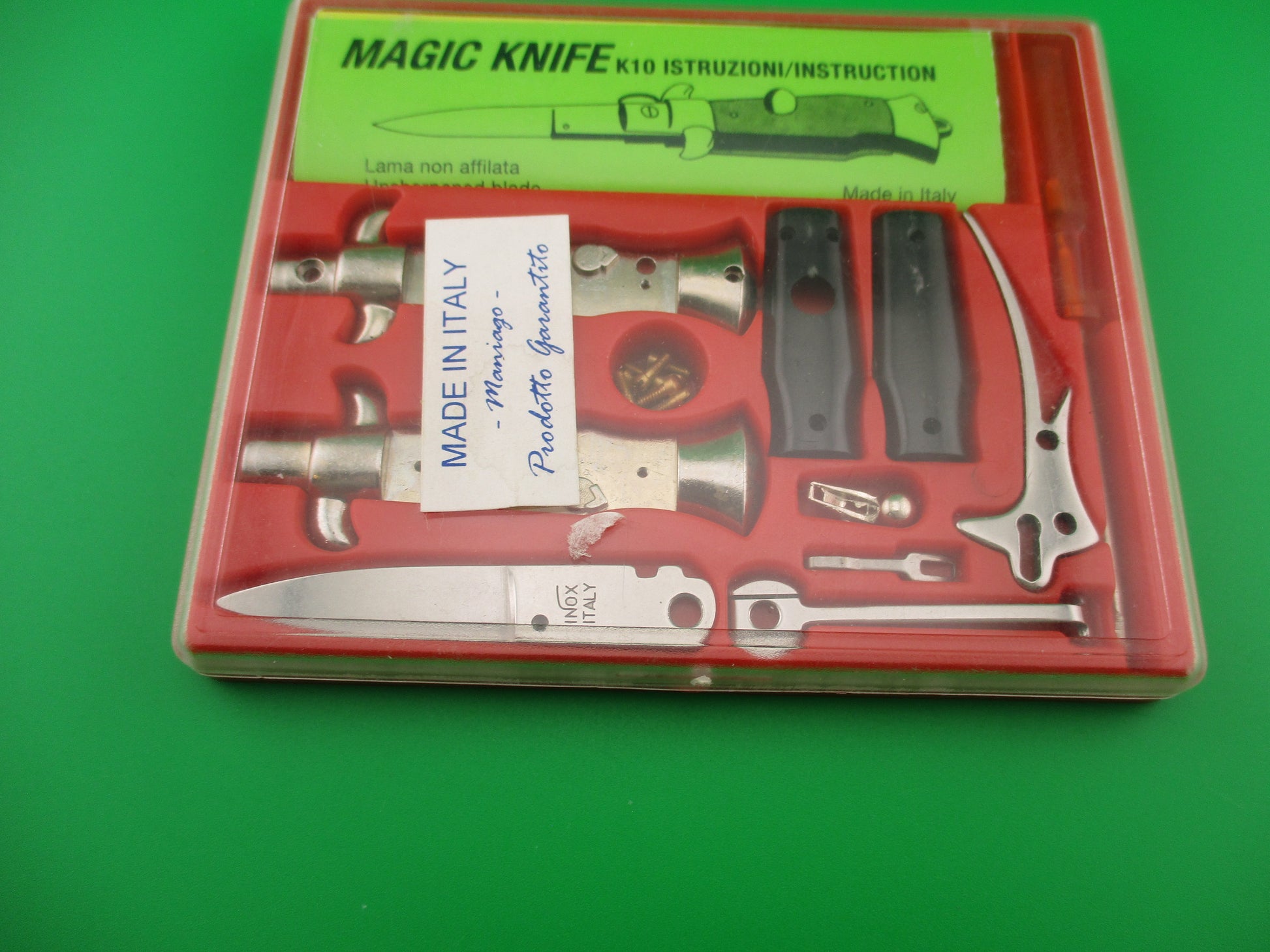 Magic Knife Kit Red background black scales vintage stiletto made Italy