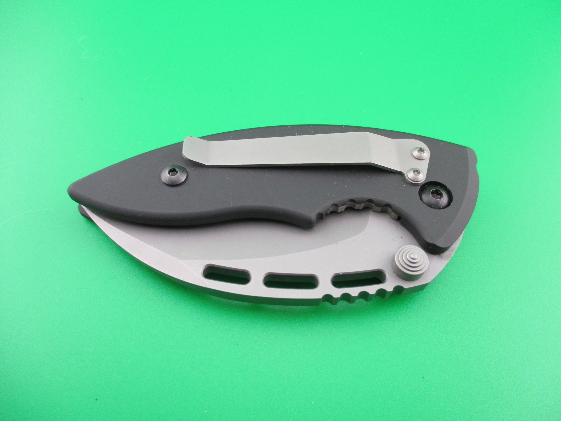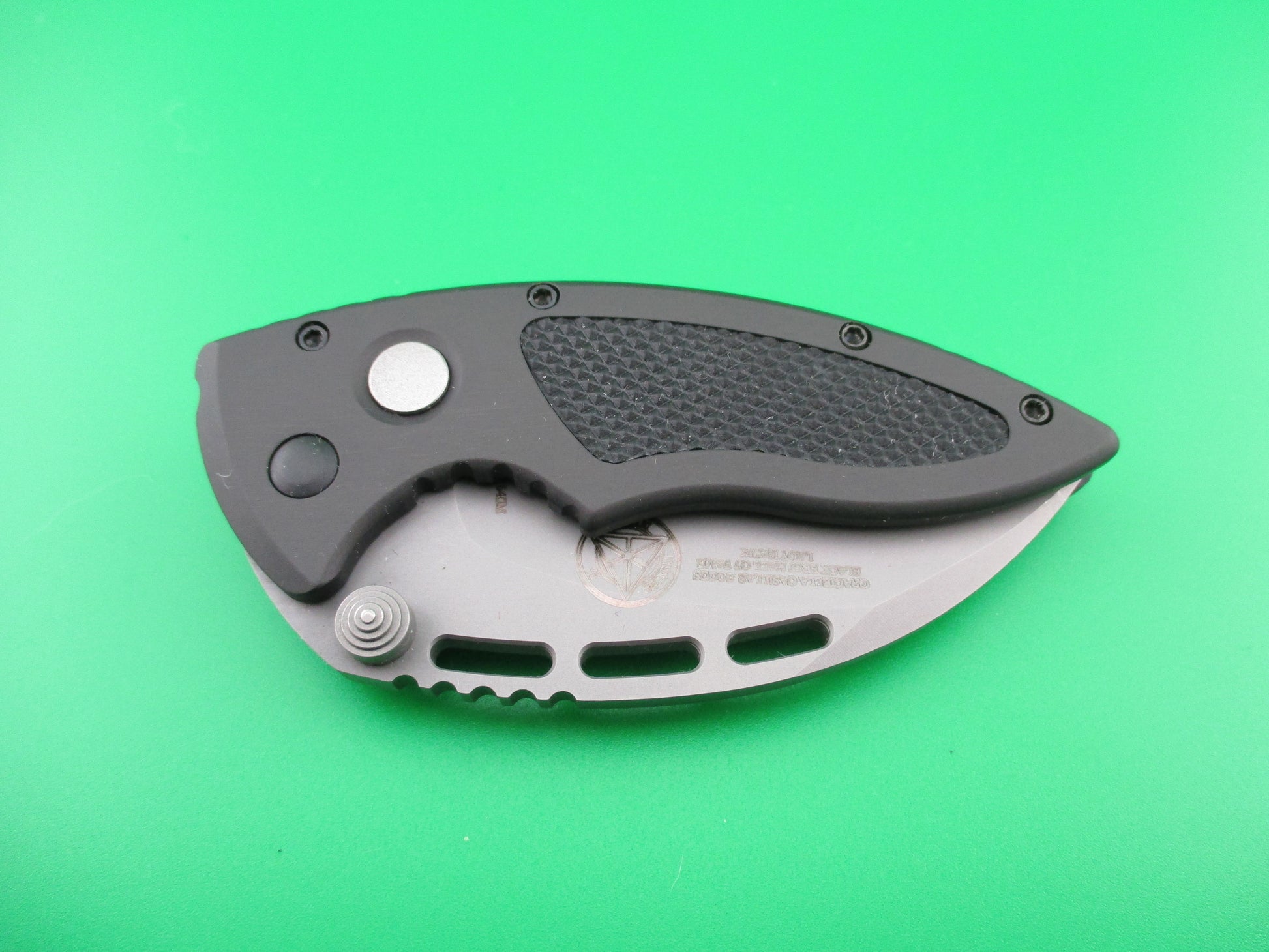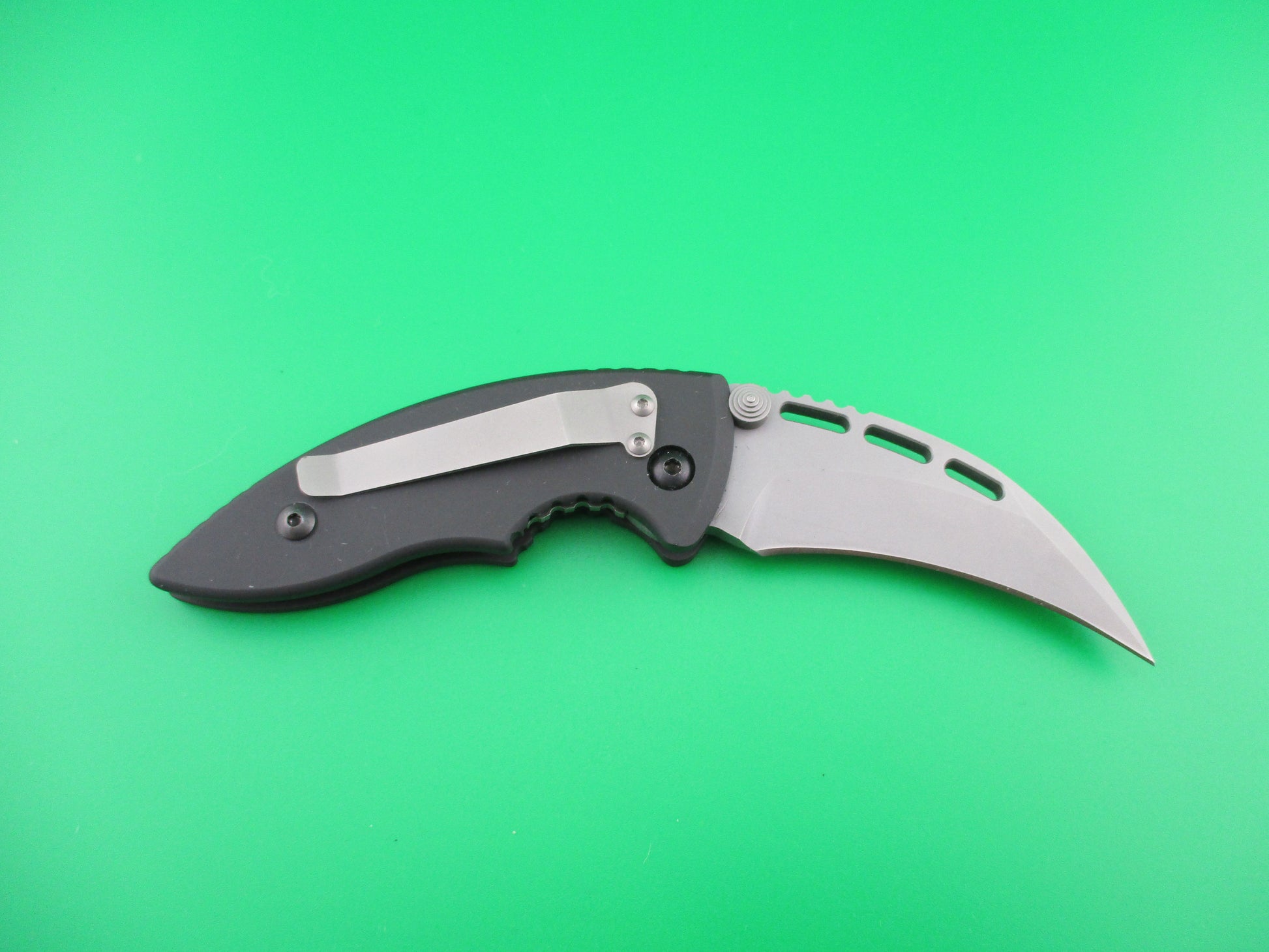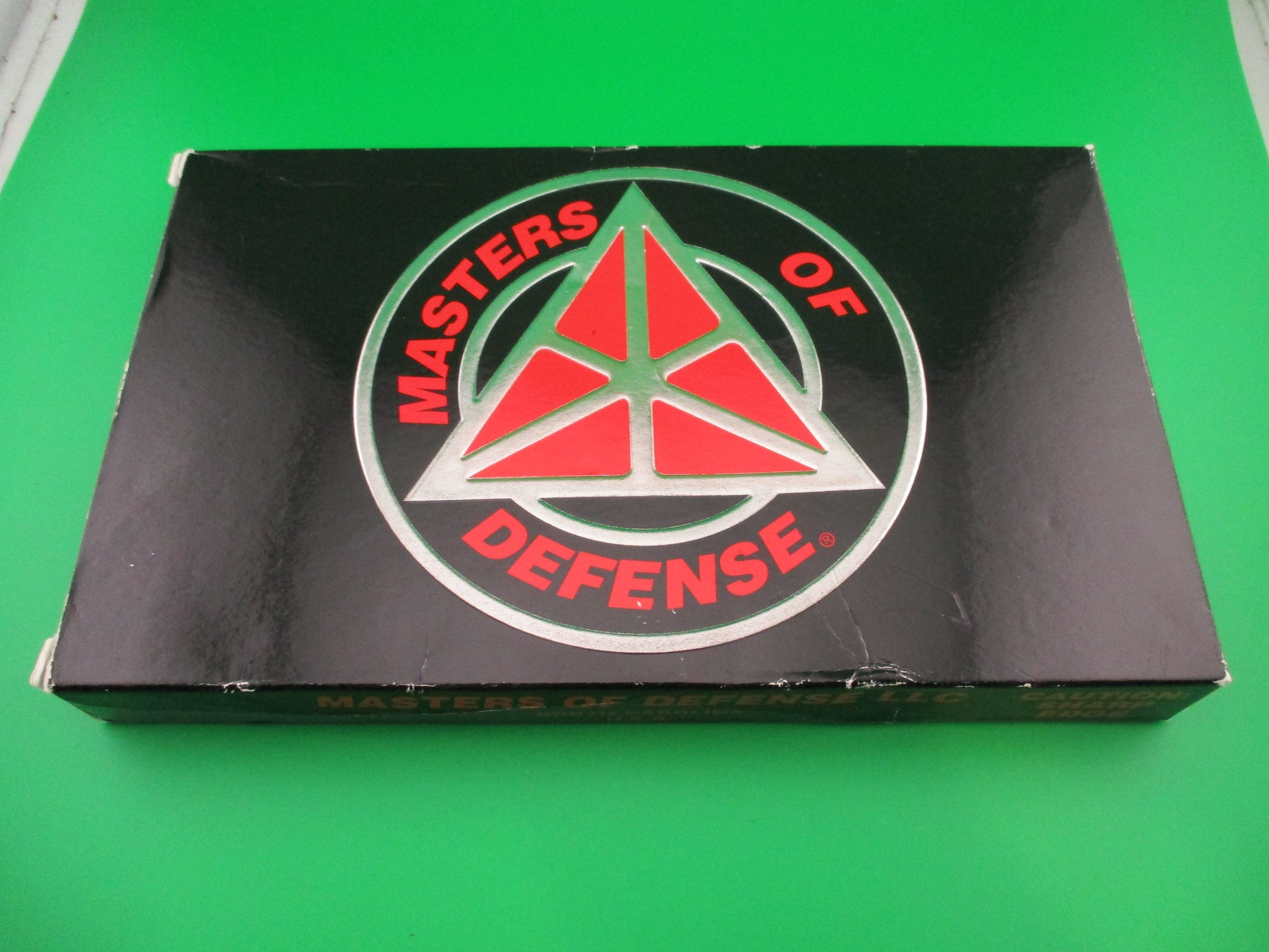 Masters of Defense Graciella Casillas Boggs Black belt Ladyhawk automatic knife in original box. The curved knife measures 5 5/8 inches open from back to tip with bead blasted matte finish blade with information etched on it. The knife works perfectly and is like new. What you see is what you get.