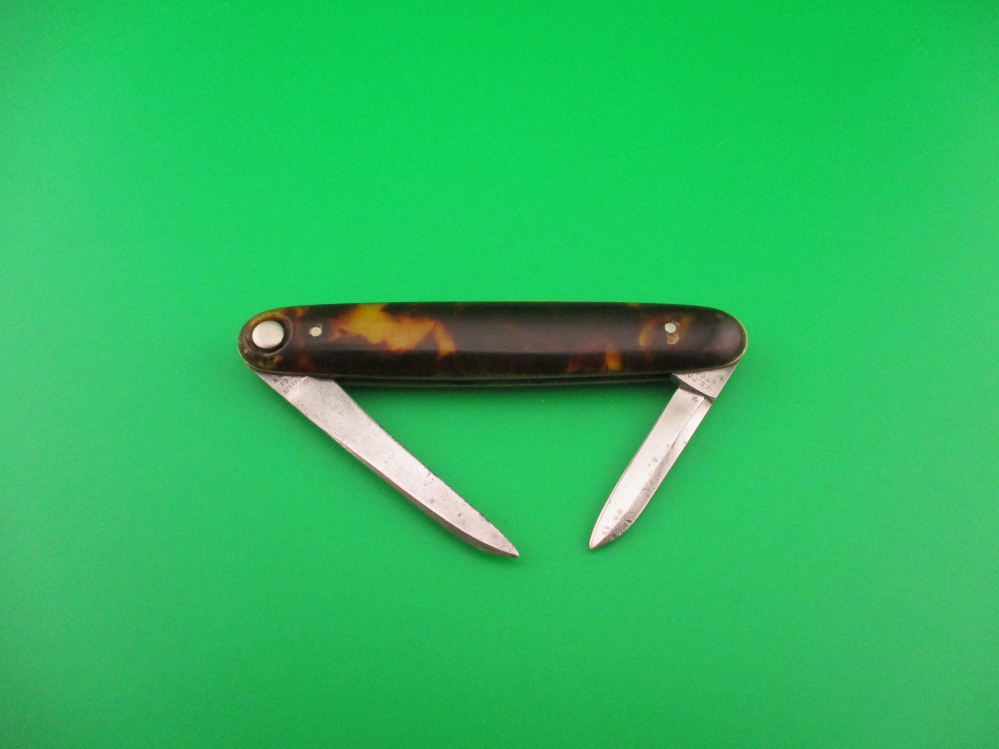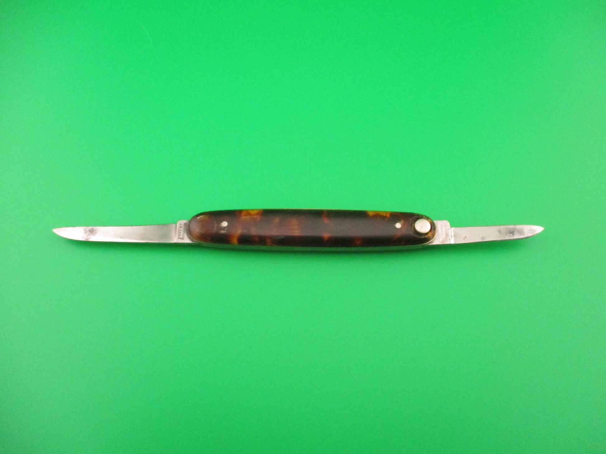 Press Button Knife Co #102 medium double Tortoise celluloid automatic knife Pat Applied For