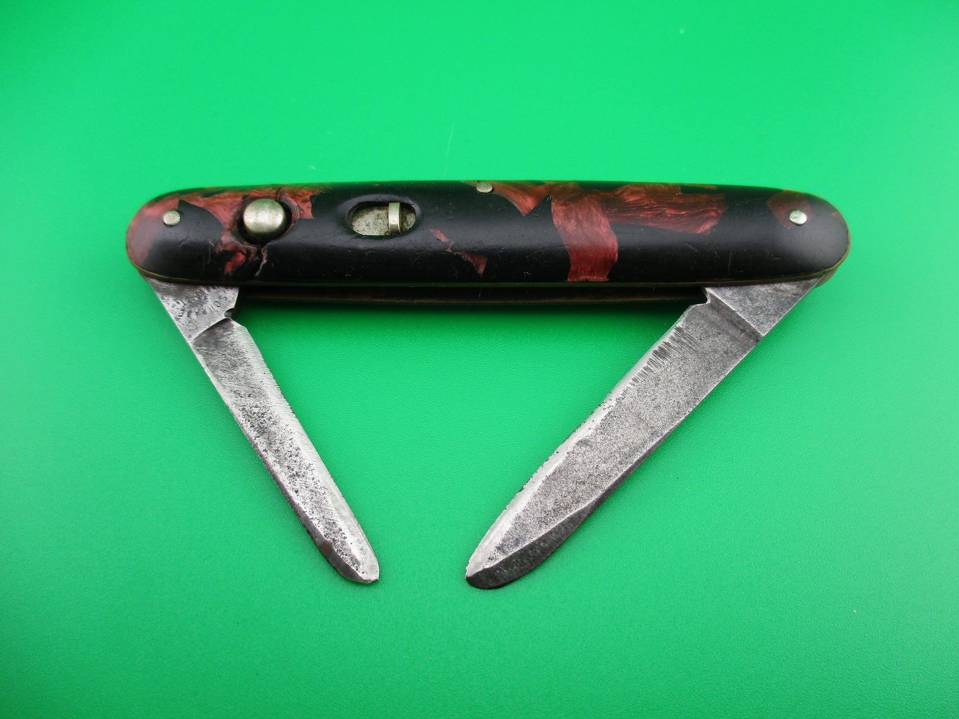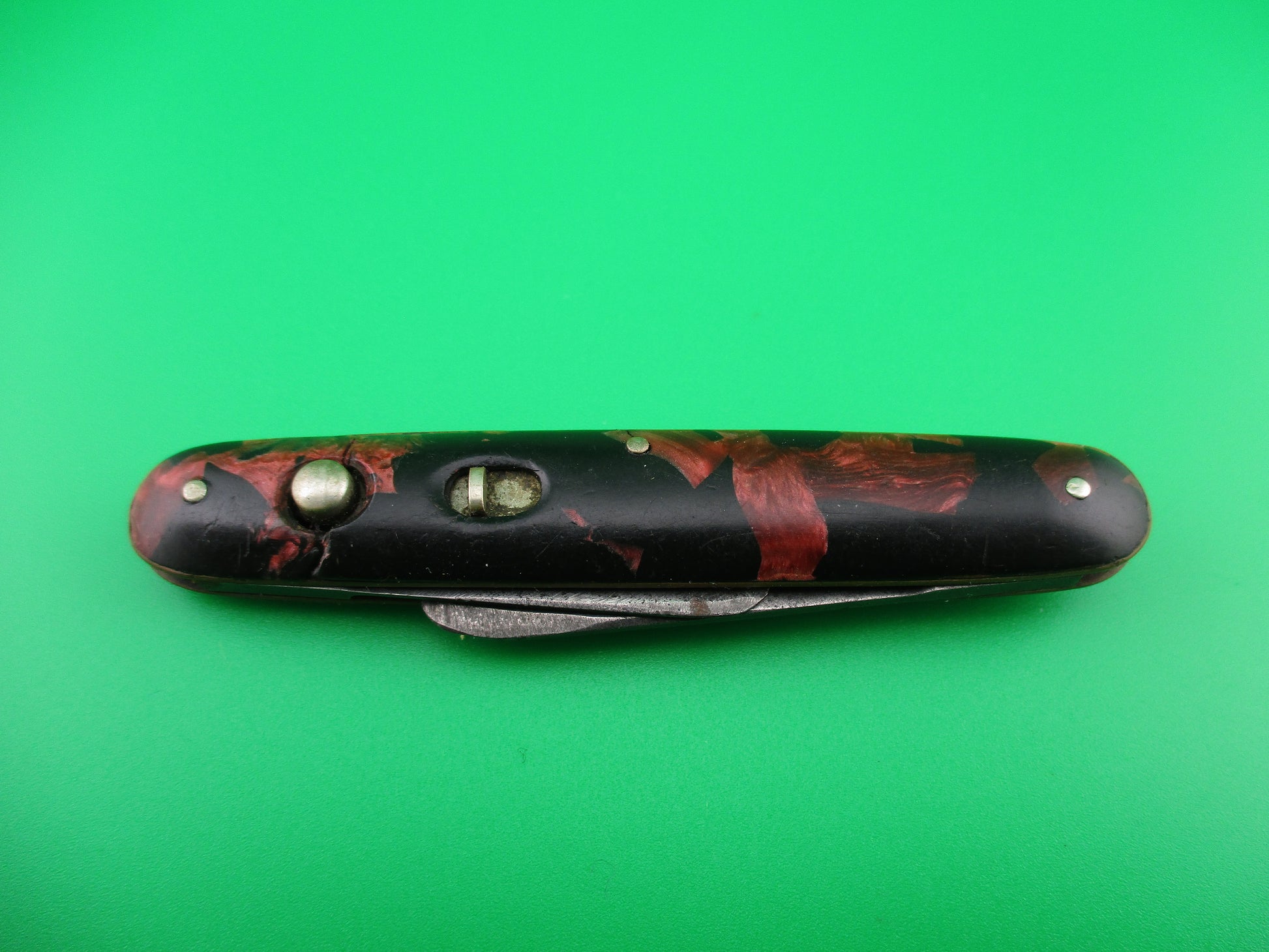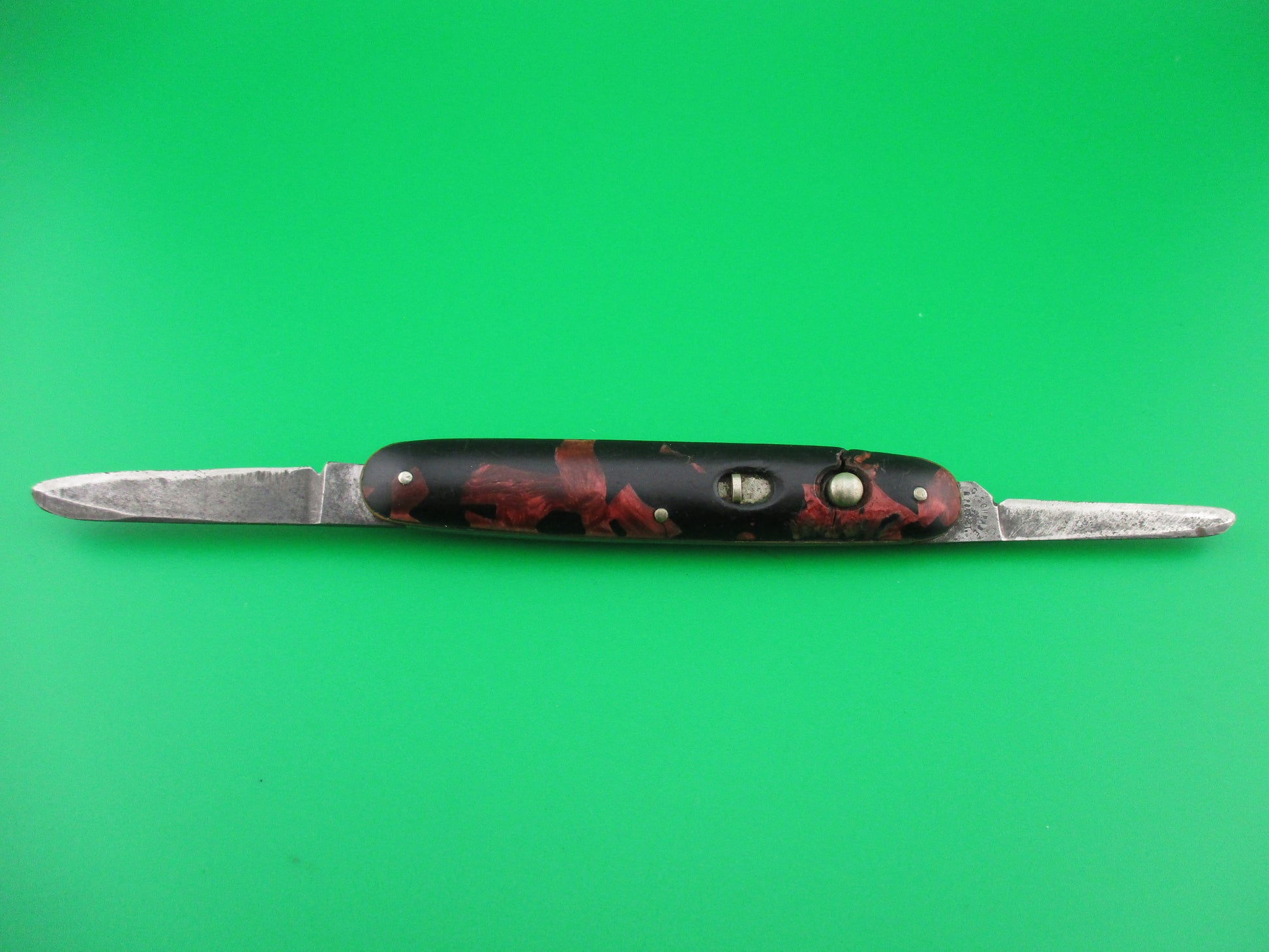 z PRESTO double Red pearl & black mottled celluloid handle switchblade Book knife