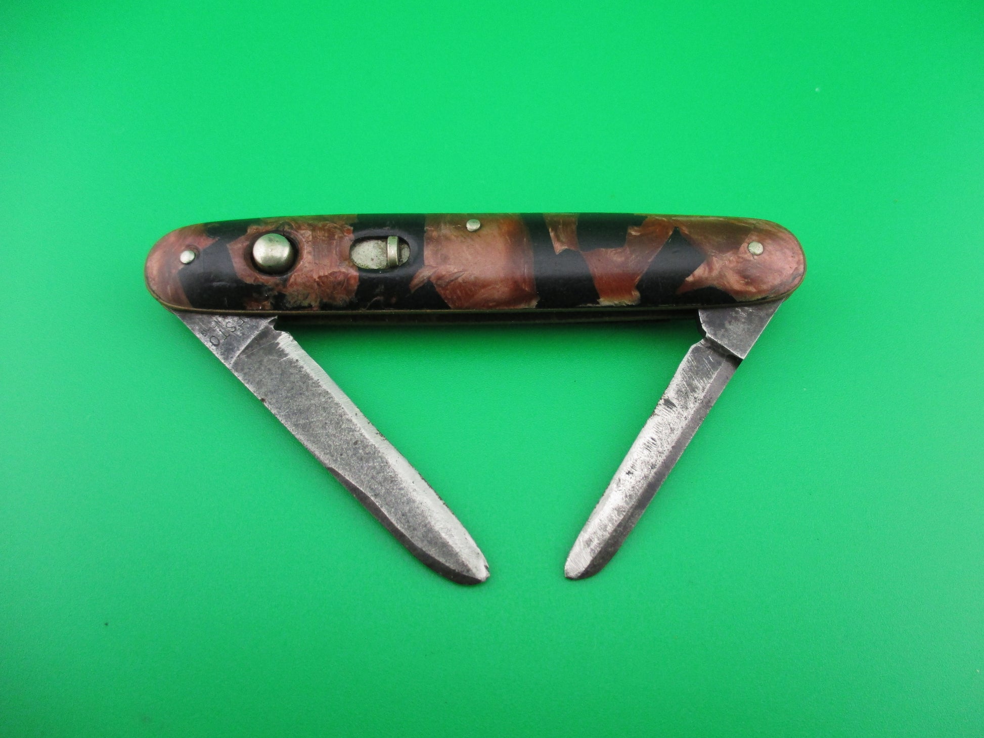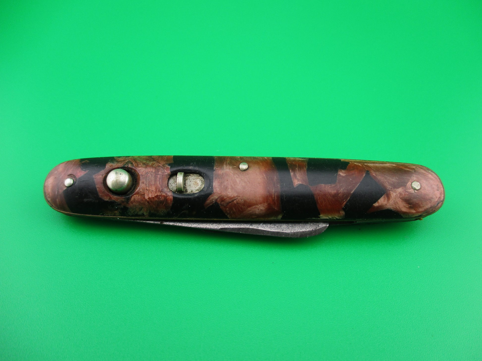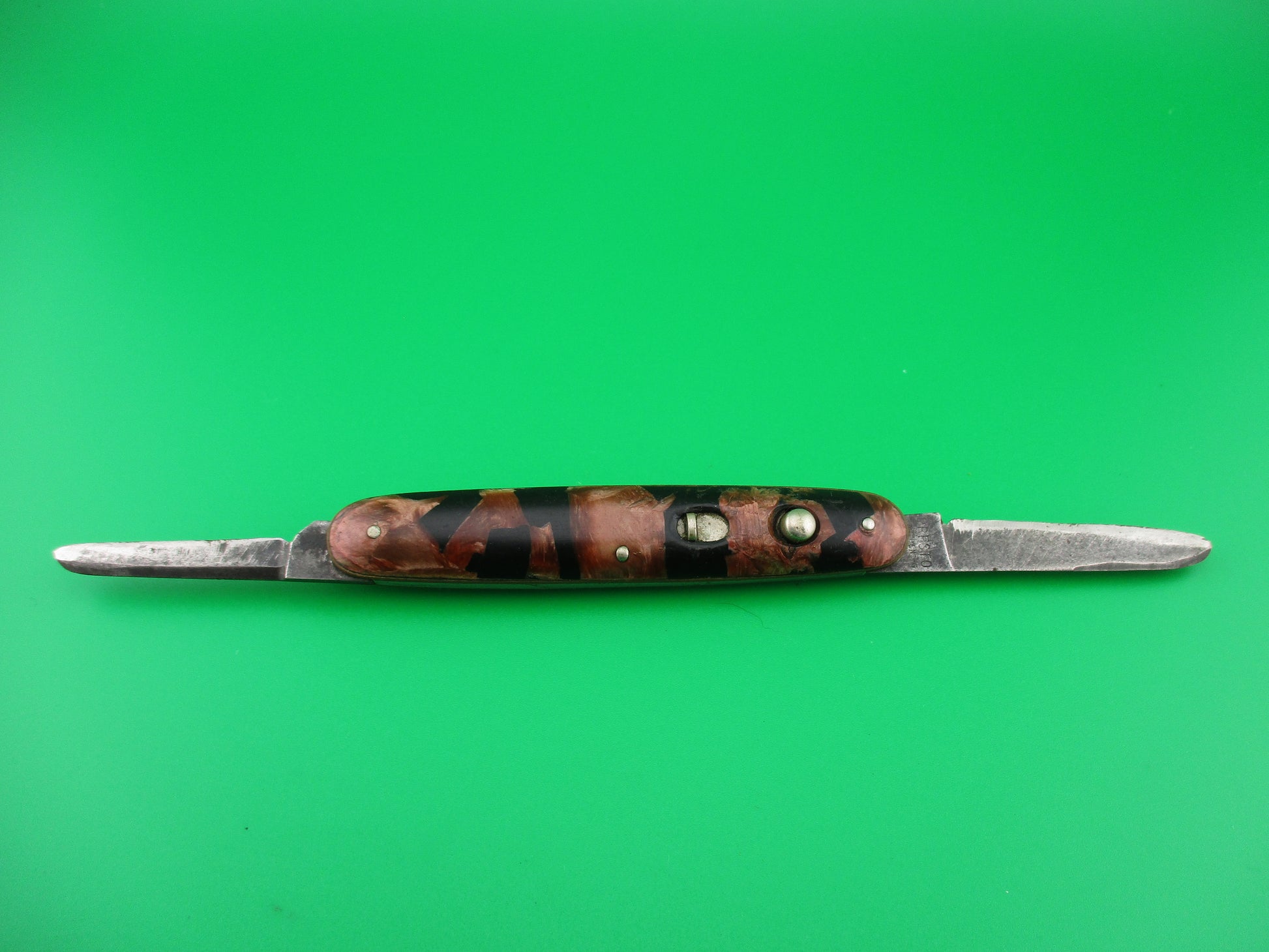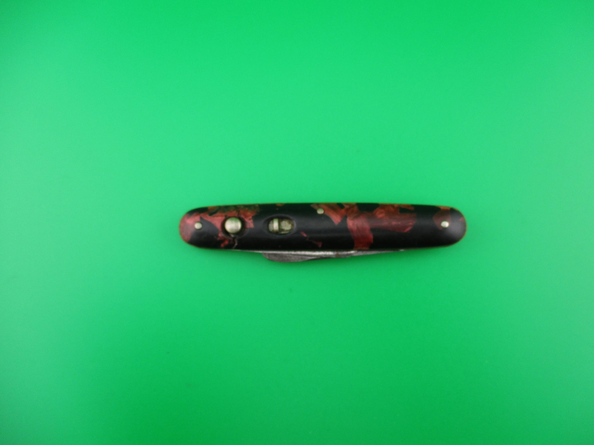 z PRESTO double Red pearl & black mottled celluloid handle switchblade Book knife