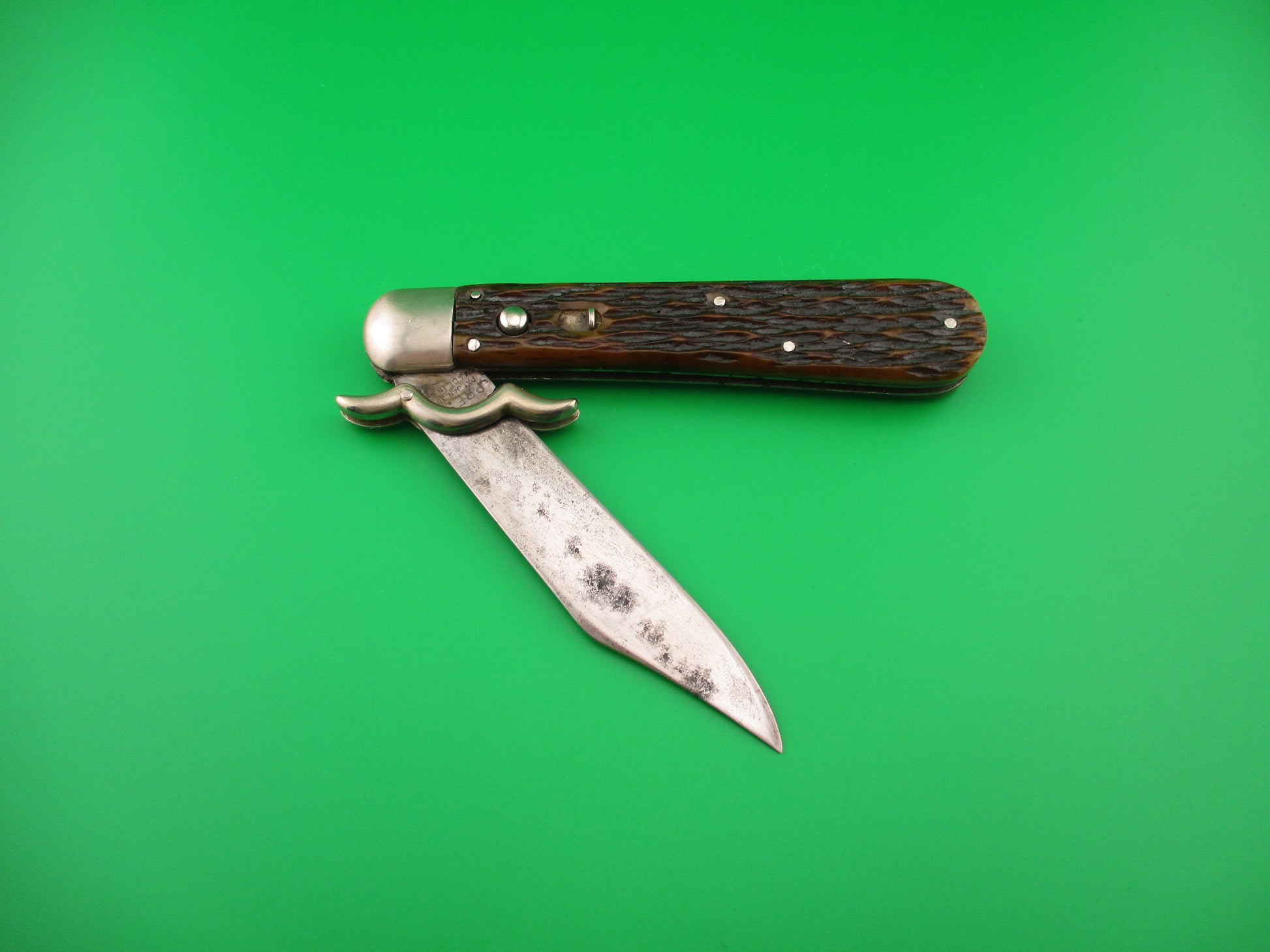 PRESTO Lazy W Folding Guard Hunter #8000 Jigged bone switchblade knife