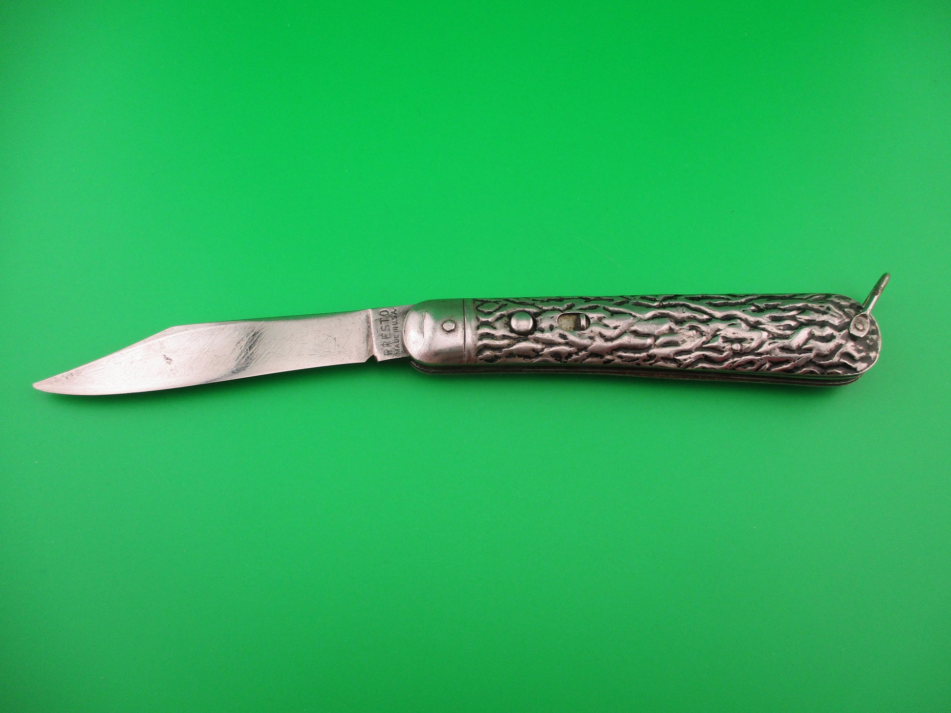 Presto MADE IN USA Vintage Paratrooper style Hunter Metal switchblade w lanyard