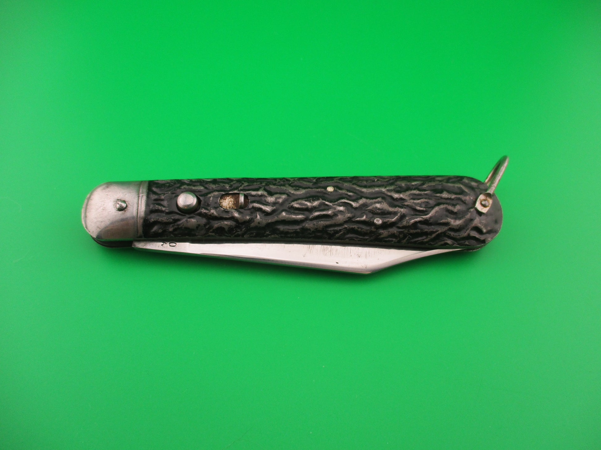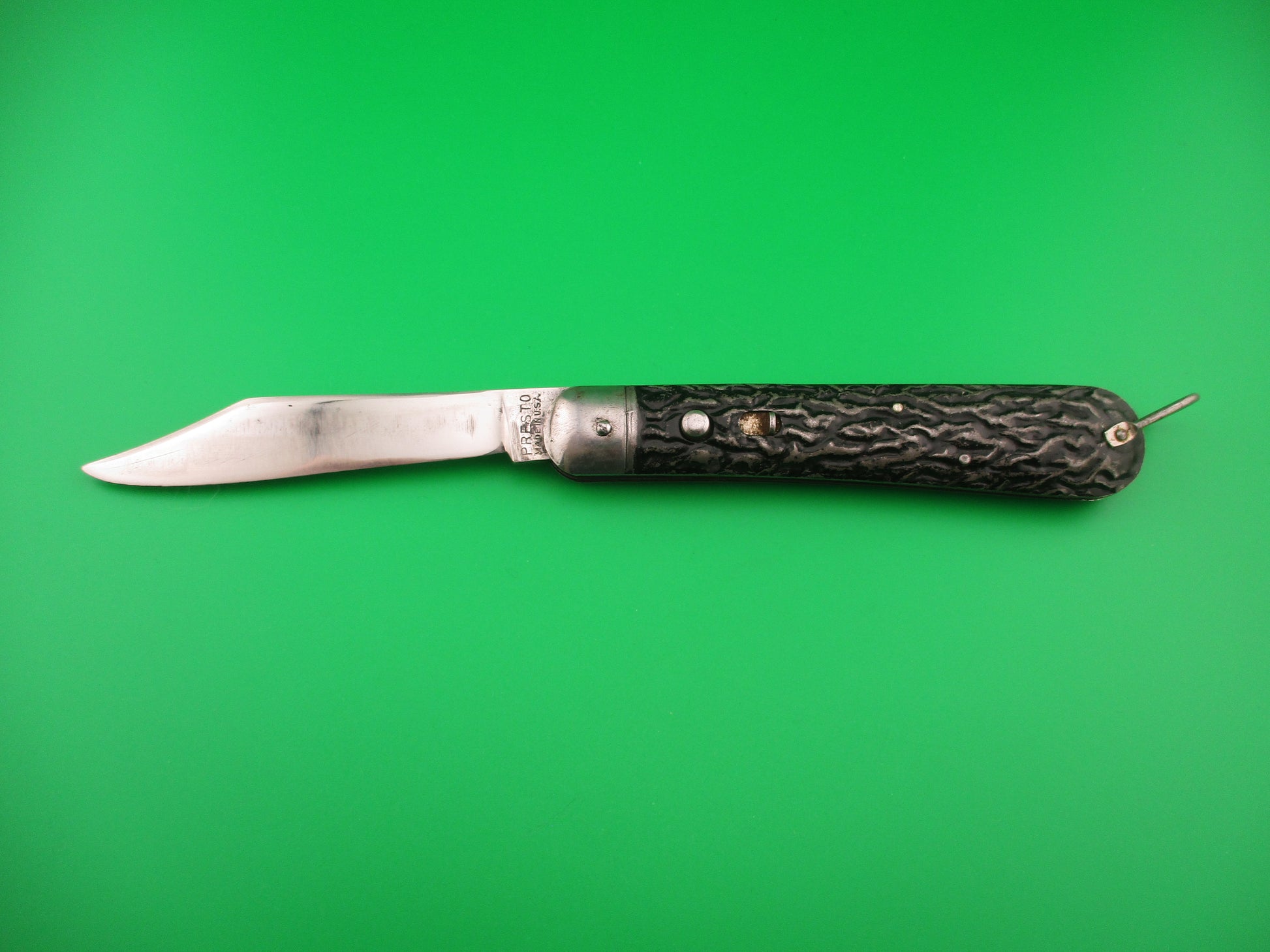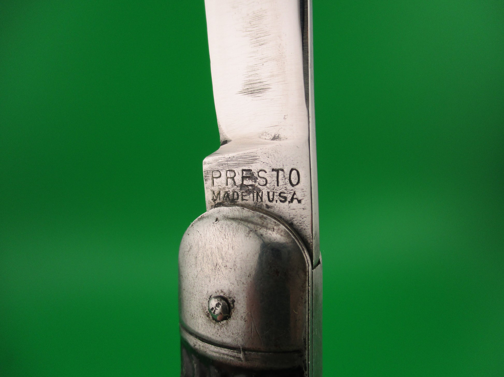 Presto MADE IN USA Vintage Paratrooper style Hunter Metal switchblade w lanyard ring