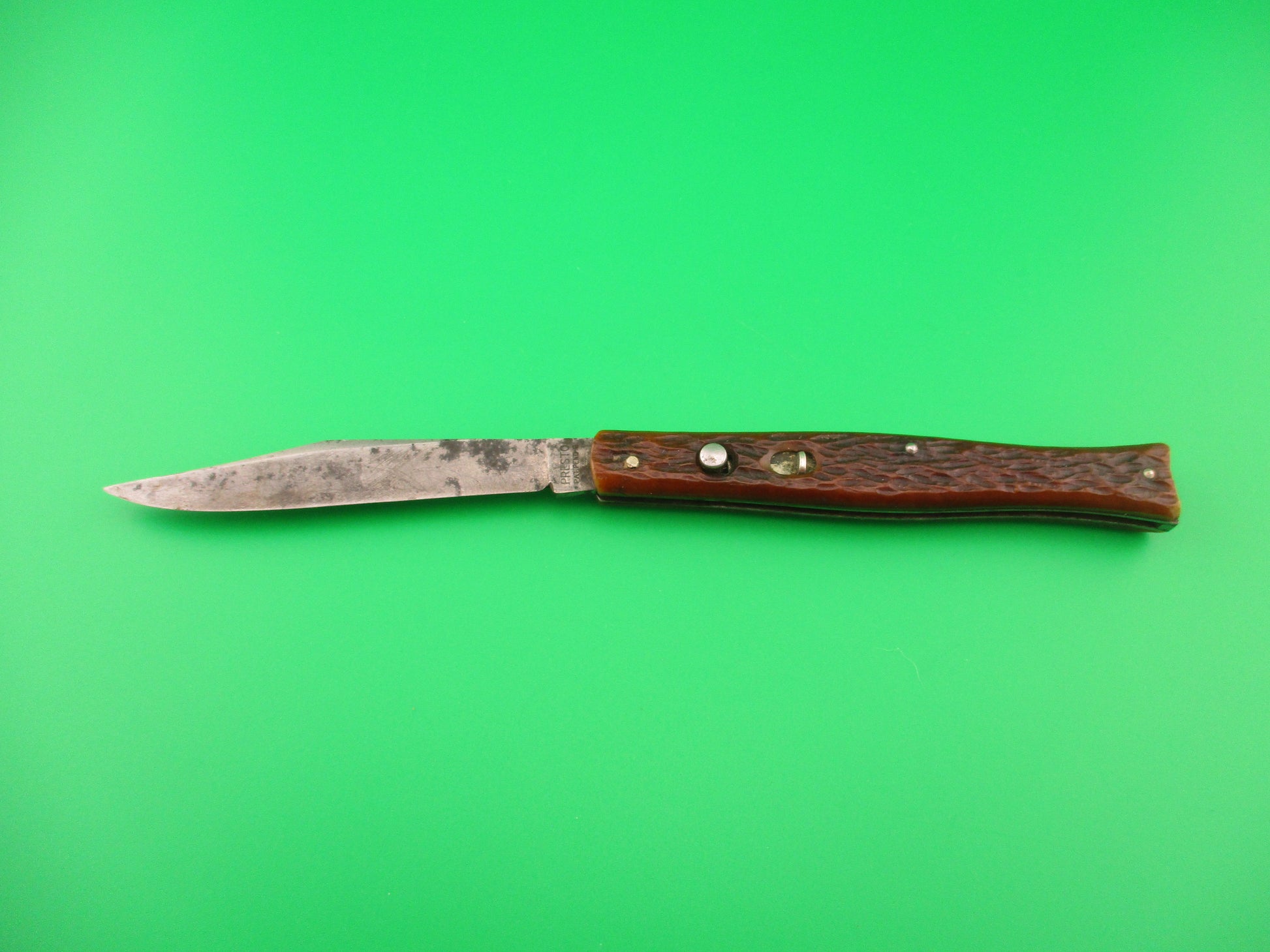 PRESTO PAT PEND-G #6000S Fishtail Jigged Bone scales Vintage switchblade knife