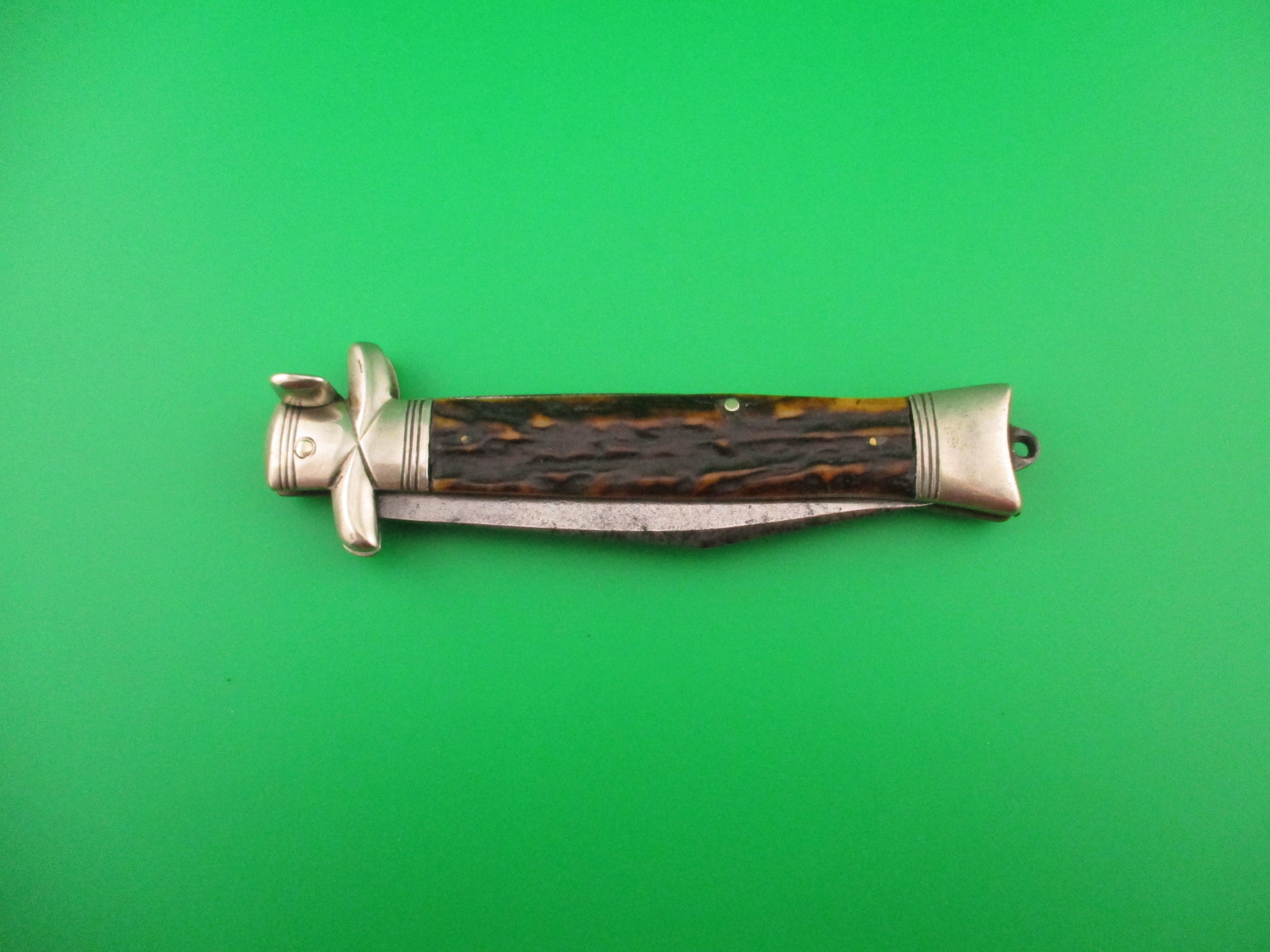 RC KRUSCHKE DULUTH MINN 23cm German Lift Tab Stag Antique automatic knife