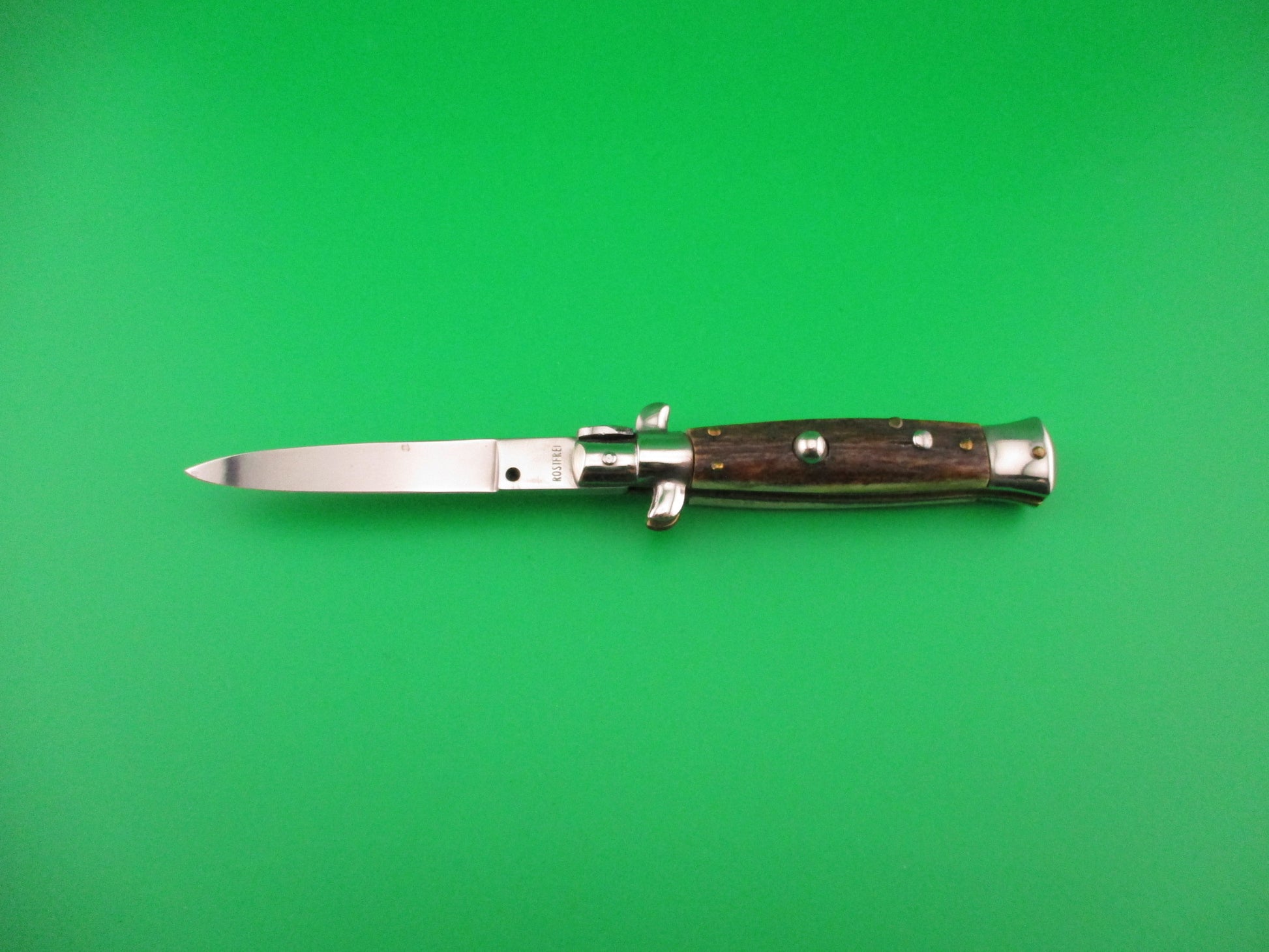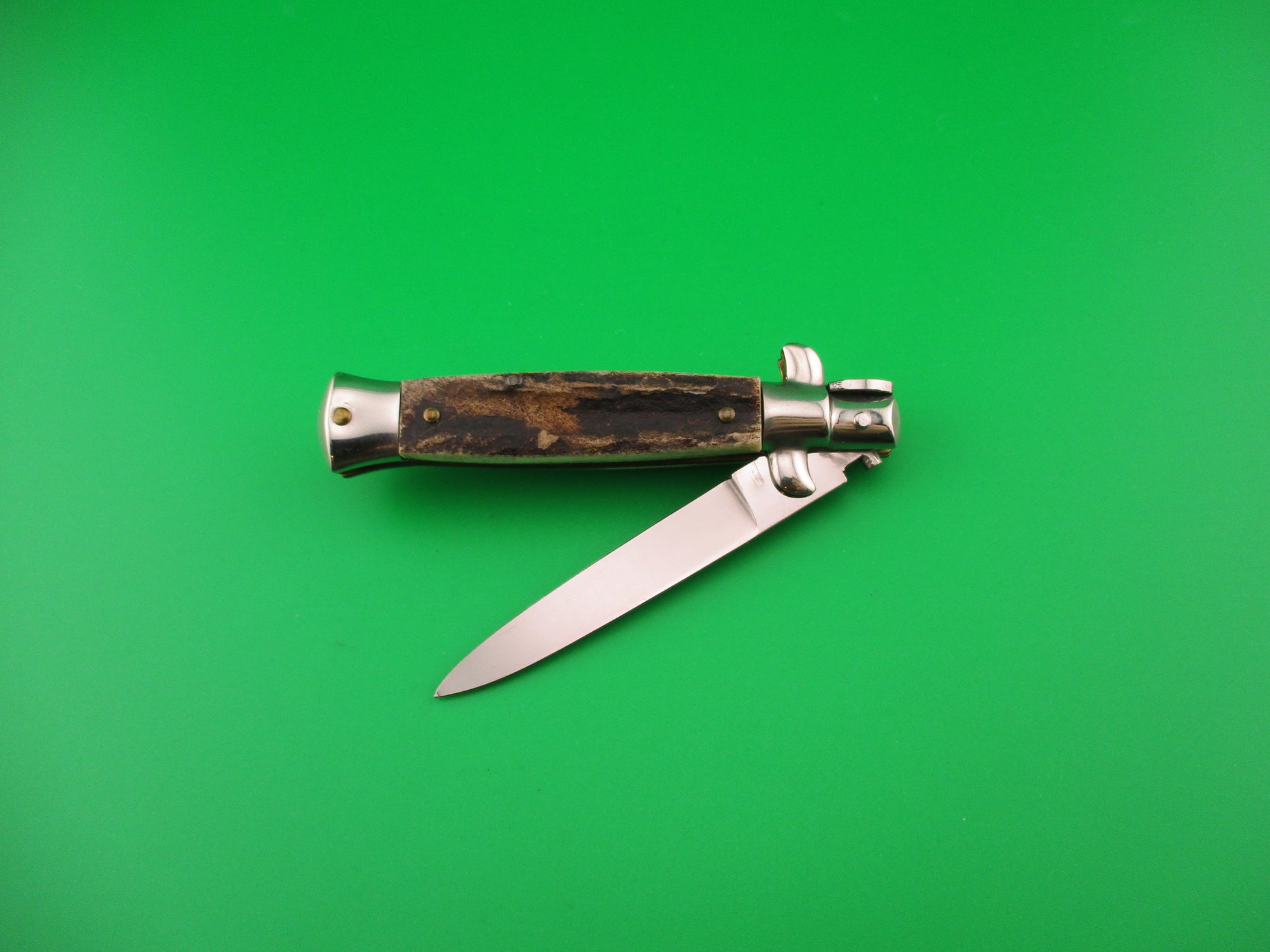 ROSTFREI 16cm Italian Stag stiletto Oreste Dibon swivel bolster automatic knife