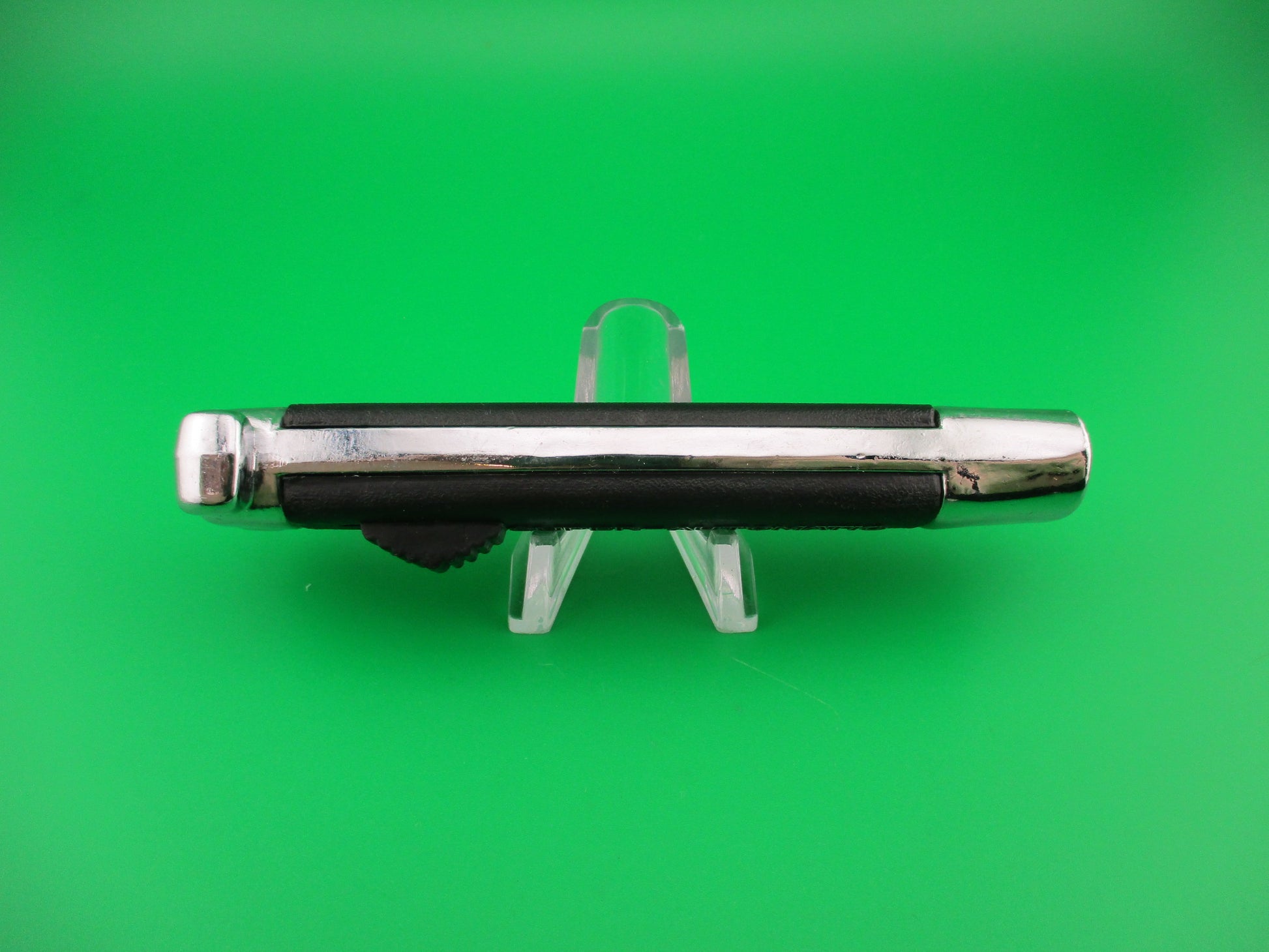 ROSTFREI 21cm SUPER AUTOMATIC OTF DA NOS switchblade knife made in the 1980s or 90s in Taiwan, or Korea. The knife measures 20.6cm (8 1/8 inches) open and 4 7/8 inches closed with non magnetic metal frame. The flat spear point blade is 100% full with all of the original factory finish and the ricasso (tang) is stamped ROSTFREI. The black plastic scales are in excellent condition and have raised letters SUPER-AUTOMATIC with silver highlights. The knife works great with blade opening fully and locking when button is pushed forward and retracts fully when button is pulled backward. New Old Stock