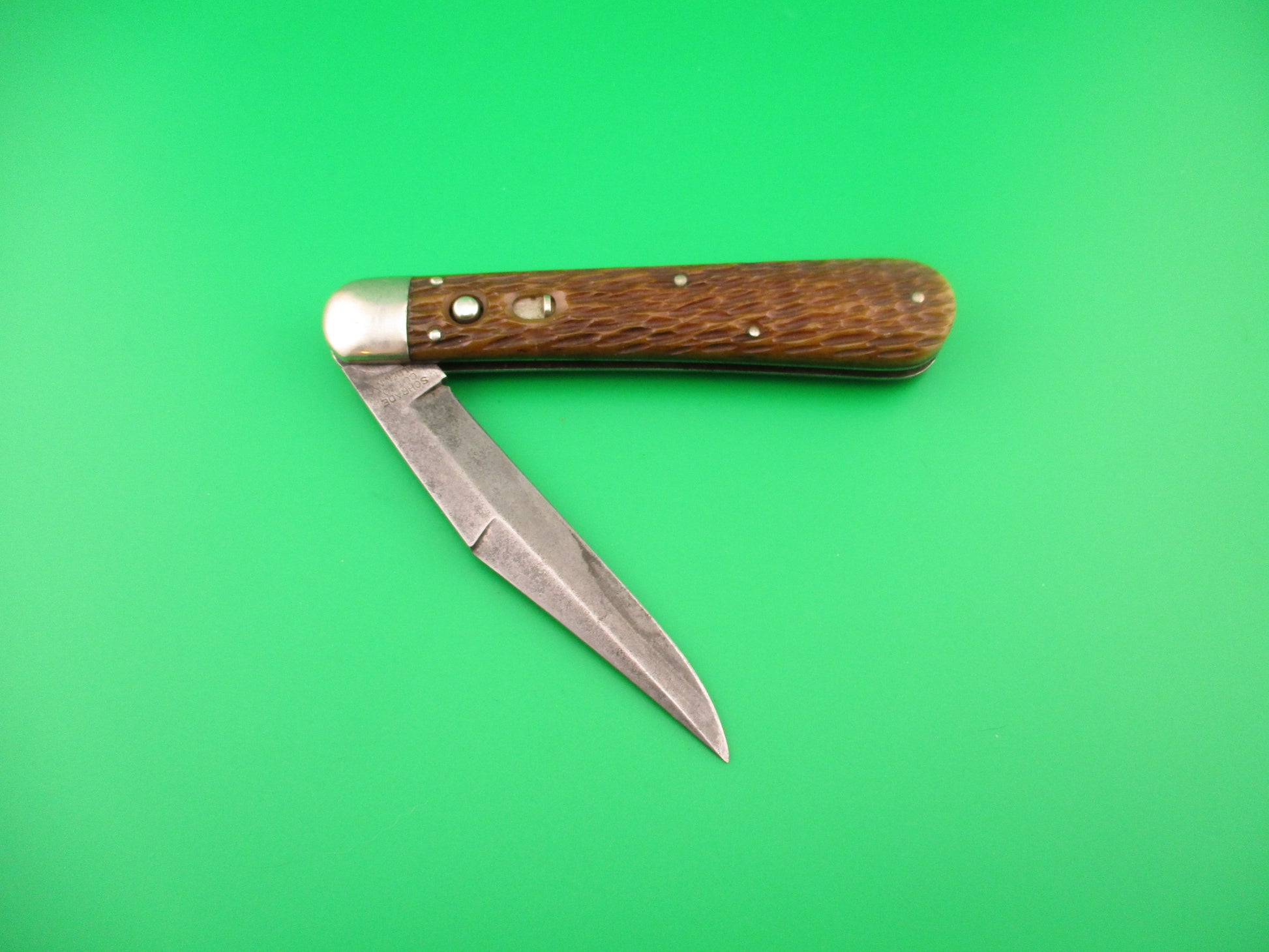 SCHRADE CUT CO 1613 3/4 Hunting Knife Saber Grind bone vintage switchblade