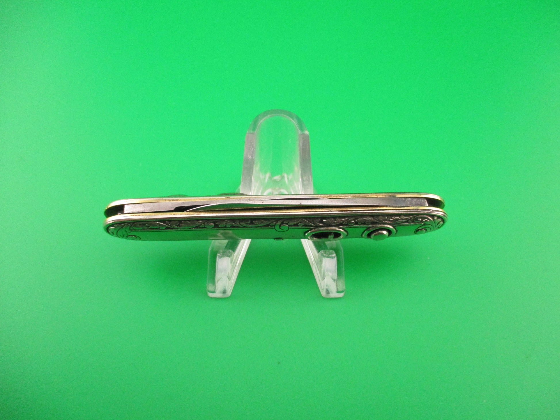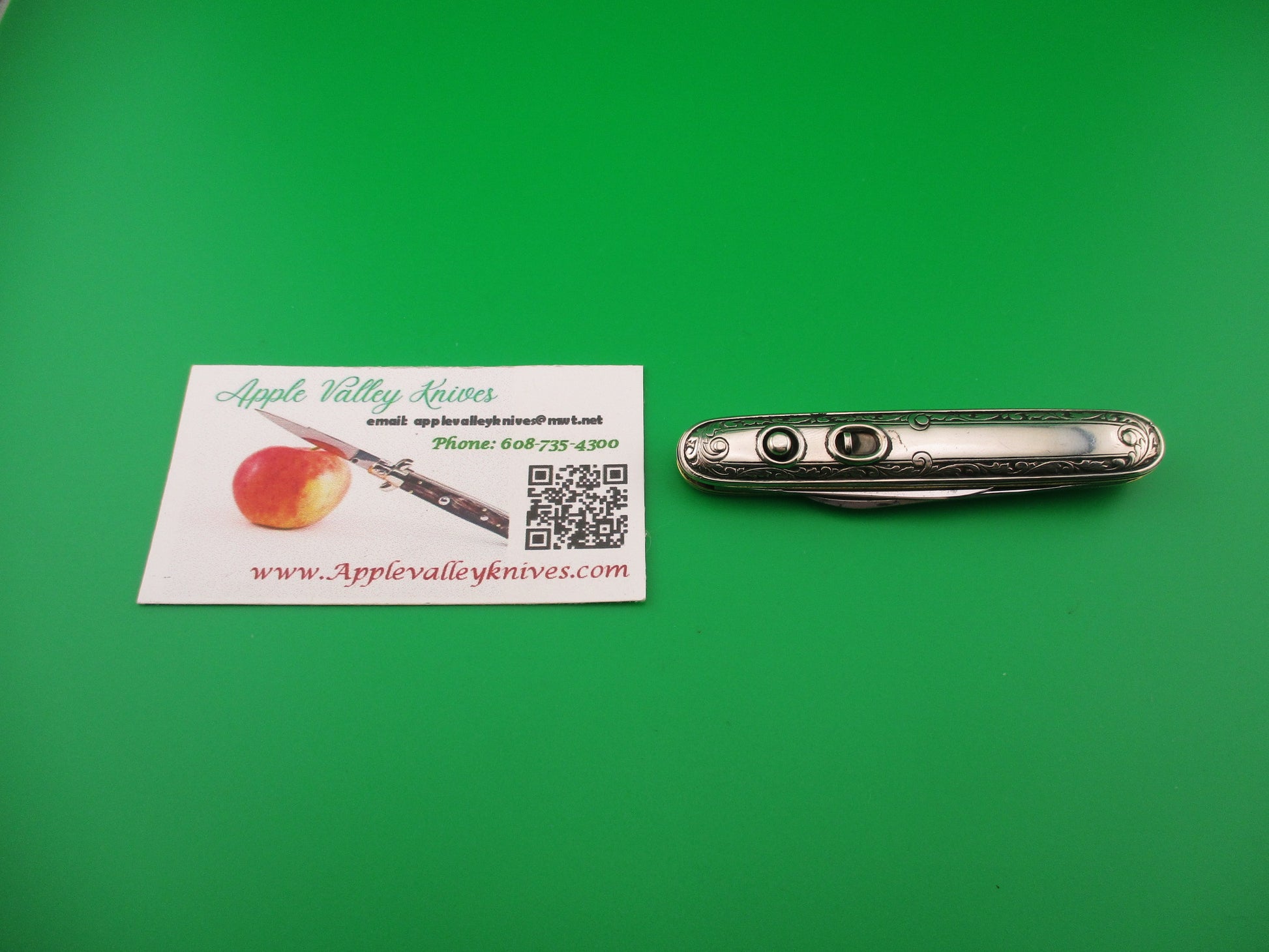 SCHRADE CUT CO Medium 7409GSil double German Silver Deluxe Scroll switchblade knife