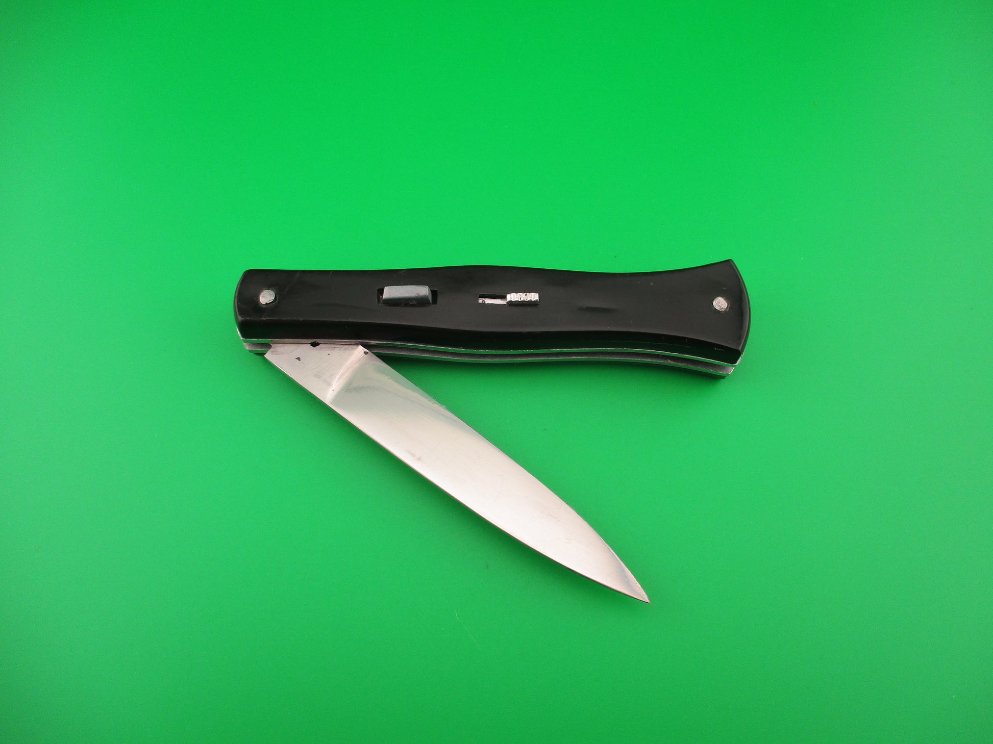 Sterile 21cm Spanish Fishtail Black Rectangular button vintage automatic knife