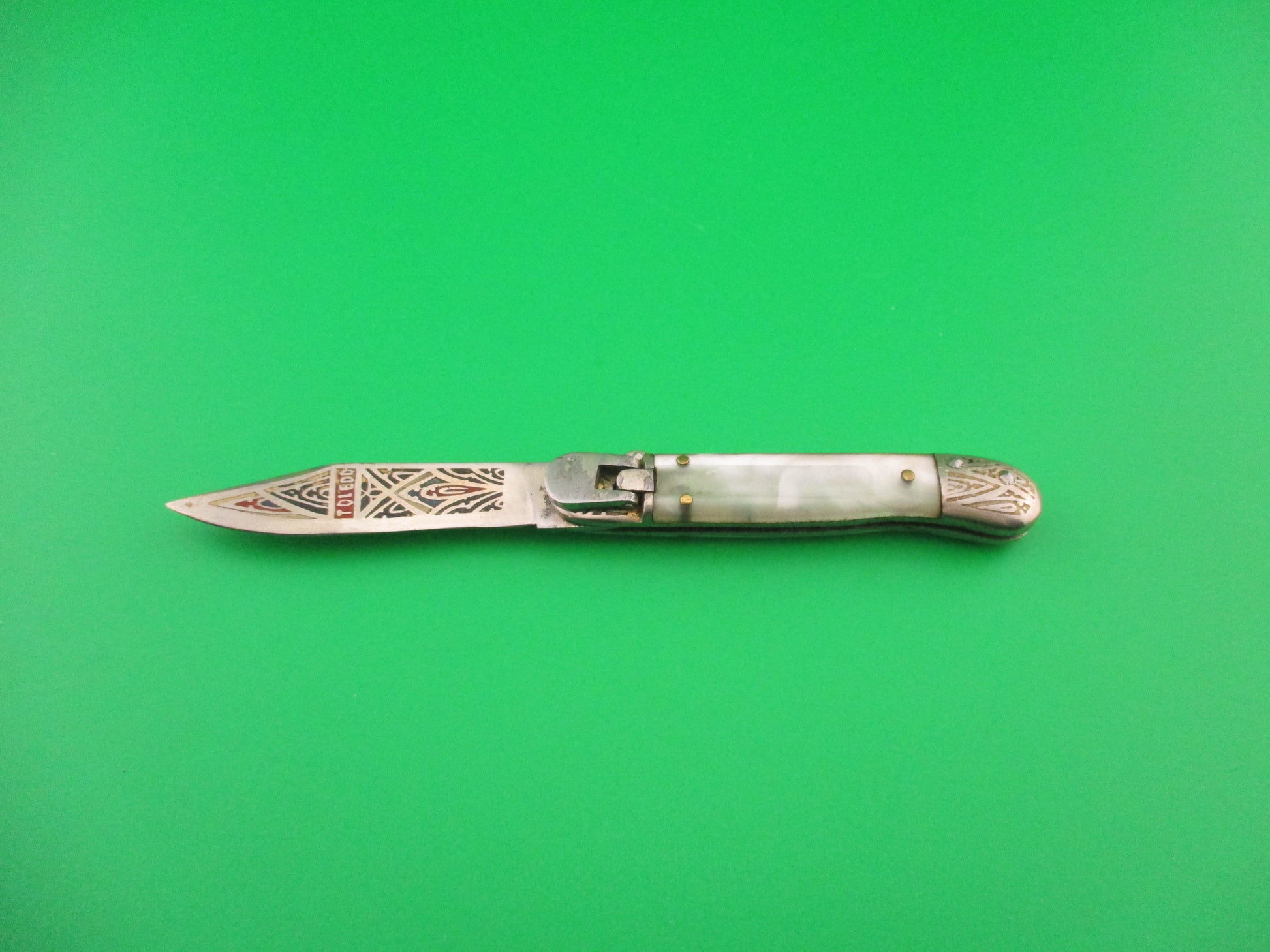 Toledo 12cm Spanish Lever Vintage Pearlex Tourist Souvenir automatic knife