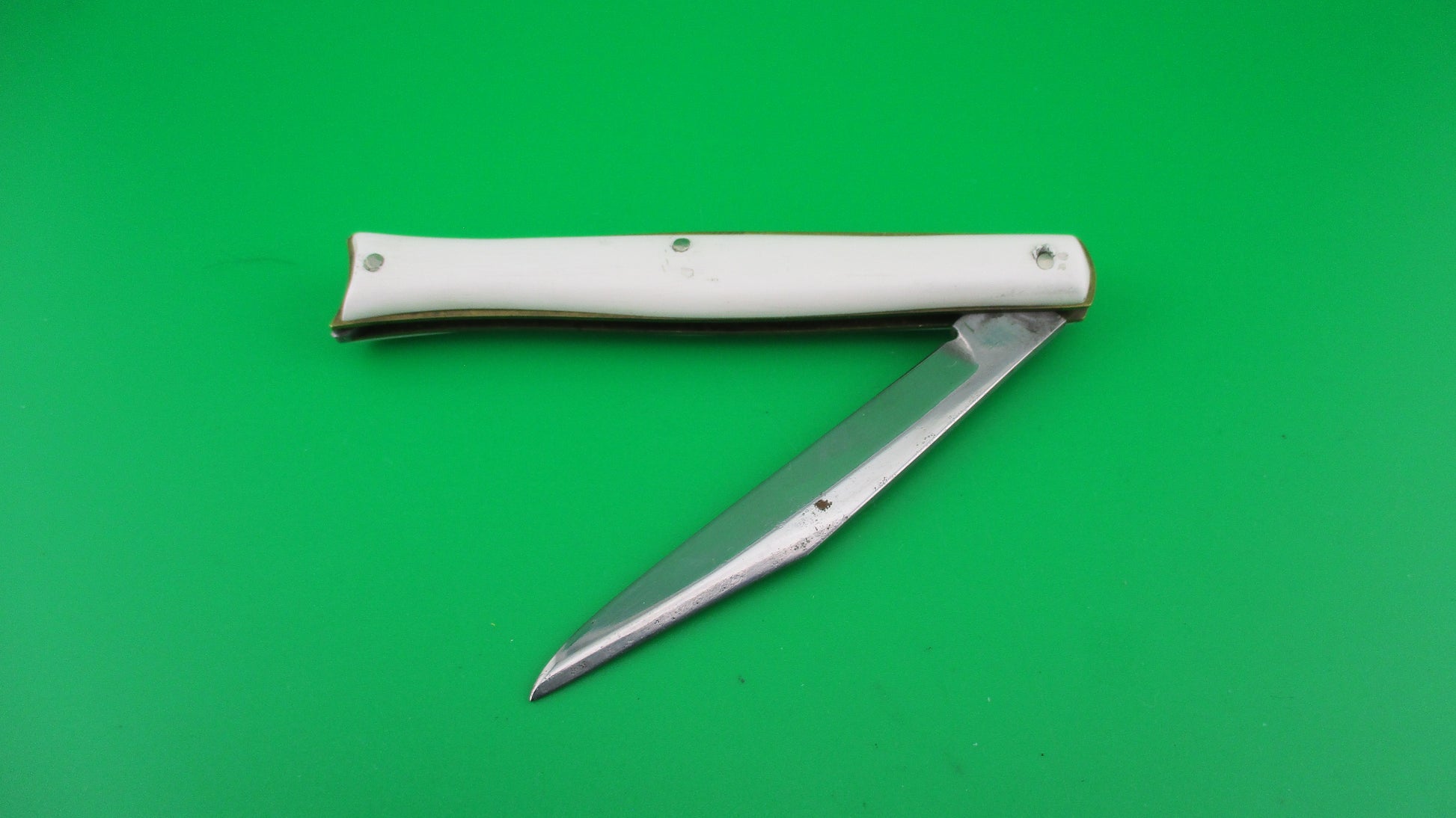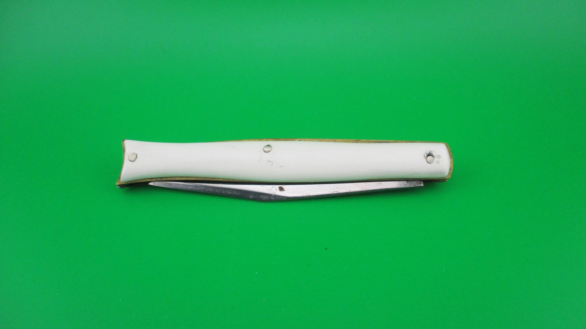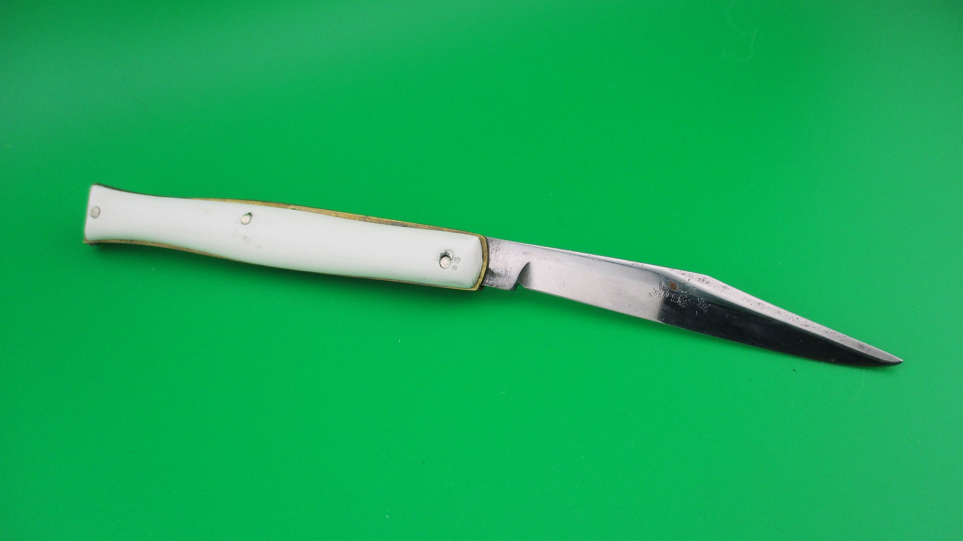 Edgemaster Fishtail 1950s White synthetic handles vintage switchblade